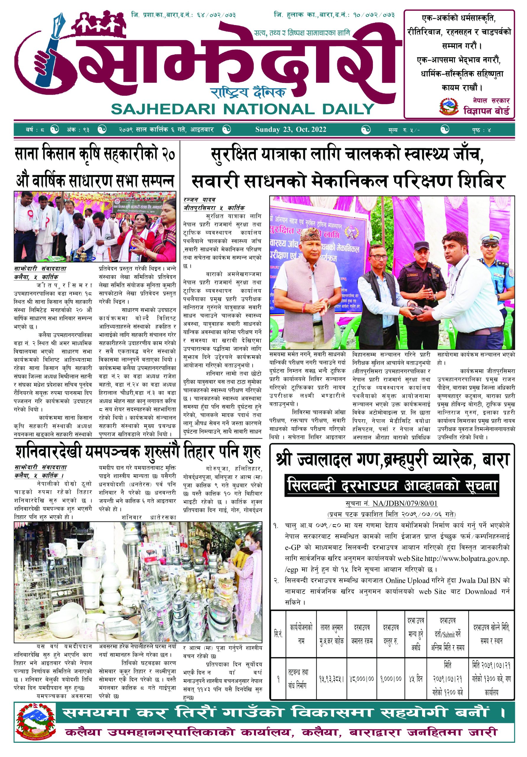 ई–पेपर २०७८ चैत्र १३ गते । साझेदारी दैनिक साझेदारी दैनिक २०७८ चैत्र १४, गते 557 पाठक संख्या शेयर शेयर Leave a review Leave a review Leave a Review Cancel replyYour email address will not be published. Required fields are marked * Please select a rating! Your Rating Rate… Perfect Good Average Not that Bad Very Poor Your Comment *नाम * Your Email * Your website Save my name, email, and website in this browser for the next time I comment. ताजा अपडेट २०८३ वैशाख ०५ गते । साझेदारी दैनिक ई–पेपर दुर्घटना न्यूनीकरणलाई केन्द्रमा राखेर काम गर्न डीआईजी थपलियाको निर्देशन मधेश मुख्य समाचार समाचार कलैयामा घरको ताला तोडेर करिब ५० लाख बराबरको चोरी मधेश मुख्य समाचार समाचार प्रधानमन्त्री कप क्रिकेटको उपाधि त्रिभुवन आर्मी क्लबलाई खेलकुद मधेश मुख्य समाचार समाचार लागुऔषधसहित विभिन्न स्थानबाट २४ जना पक्राउ प्रदेश समाचार समाचार सुनचाँदीको मूल्य घट्यो समाचार भन्सार छली प्रकरणः तीन जनाविरुद्ध अदालतमा मुद्दा, मुख्य अभियुक्तबाट २ करोडभन्दा बढी बिगो दाबी मधेश मुख्य समाचार समाचार मुख्य समाचार जीतपुरको गौशाला जग्गा अतिक्रमण घरटहरा हटाइयो मधेश मुख्य समाचार समाचार बारामा भूतपूर्व सैनिक पुनर्मिलन कार्यक्रम सम्पन्न मधेश समाचार पाँच पटक भन्दाबढी ट्राफिक नियम उल्लंघन गर्नेको लाइसेन्स निलम्बन प्रक्रिया सुरु मधेश मुख्य समाचार समाचार बाराका दुई नगरपालिकामा नयाँ प्रमुख प्रशासकीय अधिकृत खटाइए मधेश मुख्य समाचार समाचार पर्सामा नागरिकतासँगै राष्ट्रिय परिचयपत्र मधेश मुख्य समाचार समाचार प्रदेश समाचार राजश्व अनुसन्धान कार्यालय पथलैयामा आगलागी, प्रमुखको कार्यकक्ष ध्वस्त मधेश समाचार भाडा वृद्धि पछि सिमरा-काठमाडौं उडानमा यात्रु घटे मधेश मुख्य समाचार समाचार बारामा साढे दुई महिनामा एक करोडभन्दा बढीको अवैध सामान बरामद मधेश मुख्य समाचार समाचार सांसद साहलाई जीतपुरसिमरा-१७ का वडाबासीद्वारा ध्यानाकर्षणपत्र बुझाइयो मधेश मुख्य समाचार समाचार प्रधानमन्त्री कपको आजको खेलमा मधेस प्रदेश विजयी खेलकुद मधेश समाचार