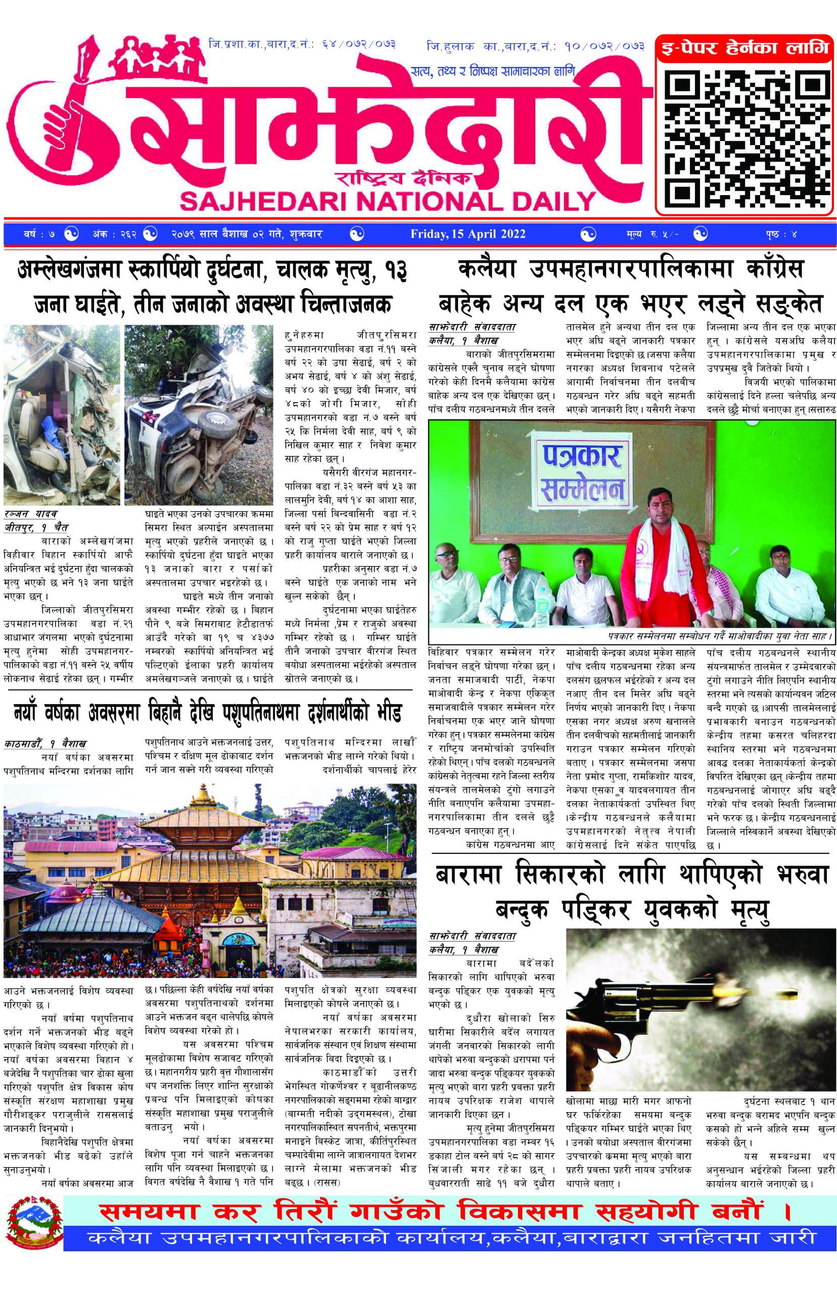 ई–पेपर २०७९ असार २५ गते । साझेदारी दैनिक साझेदारी दैनिक २०७९ असार २५, गते 476 पाठक संख्या शेयर शेयर Leave a review Leave a review Leave a Review Cancel replyYour email address will not be published. Required fields are marked * Please select a rating! Your Rating Rate… Perfect Good Average Not that Bad Very Poor Your Comment *नाम * Your Email * Your website Save my name, email, and website in this browser for the next time I comment. ताजा अपडेट प्रधानमन्त्री कप क्रिकेटको उपाधि त्रिभुवन आर्मी क्लबलाई खेलकुद मधेश मुख्य समाचार समाचार लागुऔषधसहित विभिन्न स्थानबाट २४ जना पक्राउ प्रदेश समाचार समाचार सुनचाँदीको मूल्य घट्यो समाचार भन्सार छली प्रकरणः तीन जनाविरुद्ध अदालतमा मुद्दा, मुख्य अभियुक्तबाट २ करोडभन्दा बढी बिगो दाबी मधेश मुख्य समाचार समाचार जीतपुरको गौशाला जग्गा अतिक्रमण घरटहरा हटाइयो मधेश मुख्य समाचार समाचार बारामा भूतपूर्व सैनिक पुनर्मिलन कार्यक्रम सम्पन्न मधेश समाचार २०८३ वैशाख ०४ गते । साझेदारी दैनिक ई–पेपर मुख्य समाचार पाँच पटक भन्दाबढी ट्राफिक नियम उल्लंघन गर्नेको लाइसेन्स निलम्बन प्रक्रिया सुरु मधेश मुख्य समाचार समाचार बाराका दुई नगरपालिकामा नयाँ प्रमुख प्रशासकीय अधिकृत खटाइए मधेश मुख्य समाचार समाचार पर्सामा नागरिकतासँगै राष्ट्रिय परिचयपत्र मधेश मुख्य समाचार समाचार राजश्व अनुसन्धान कार्यालय पथलैयामा आगलागी, प्रमुखको कार्यकक्ष ध्वस्त मधेश समाचार भाडा वृद्धि पछि सिमरा-काठमाडौं उडानमा यात्रु घटे मधेश मुख्य समाचार समाचार प्रदेश समाचार बारामा साढे दुई महिनामा एक करोडभन्दा बढीको अवैध सामान बरामद मधेश मुख्य समाचार समाचार सांसद साहलाई जीतपुरसिमरा-१७ का वडाबासीद्वारा ध्यानाकर्षणपत्र बुझाइयो मधेश मुख्य समाचार समाचार प्रधानमन्त्री कपको आजको खेलमा मधेस प्रदेश विजयी खेलकुद मधेश समाचार स्थानीय तहसँग मागियो विद्यालय समायोजनको विवरण प्रदेश समाचार समाचार होटेल करण राज प्यालेसमा आधुनिक सुविधासहित स्विमिङ पुल उद्घाटन मधेश मुख्य समाचार समाचार