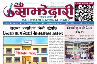 ई–पेपर २०७९ साउन १७ गते । साझेदारी दैनिक साझेदारी दैनिक २०७९ श्रावण १७, गते 494 पाठक संख्या शेयर शेयर Leave a review Leave a review Leave a Review Cancel replyYour email address will not be published. Required fields are marked * Please select a rating! Your Rating Rate… Perfect Good Average Not that Bad Very Poor Your Comment *नाम * Your Email * Your website Save my name, email, and website in this browser for the next time I comment. ताजा अपडेट पहिलेको निर्णय फेरियो : कलैयामा अब वैशाख १६ देखि कक्षा सुरु हुने मधेश मुख्य समाचार समाचार कलैयामा वैशाख १५ गतेदेखि भर्ना अभियान, २१ गतेदेखि पठनपाठन सुरु हुने मधेश मुख्य समाचार समाचार पेट्रोलियम पदार्थमा गरिएको मूल्य वृद्धि फिर्ता लिन अध्यक्ष घिसिङको माग समाचार पर्सा राष्ट्रिय निकुञ्जमा वन्यजन्तु उद्धार केन्द्र उद्घाटन मधेश समाचार कलैयामा खसी मासुको छालासहित र बिना छालाको छुट्टाछुट्टै मूल्य निर्धारण मधेश समाचार सिम्रौनगढमा छाडा कुकुरको आतंक : एकै घरका ८ खसी-बाख्रा मरे मधेश मुख्य समाचार समाचार २०८३ वैशाख ०७ गते । साझेदारी दैनिक ई–पेपर मुख्य समाचार रेल्वे सेवा ७९ करोड ऋणमा मधेश समाचार सडक विस्तारले वीरगञ्जको विद्युत् अवरुद्ध मधेश मुख्य समाचार समाचार बाईपास विस्तारका लागि २४ घण्टाभित्र संरचना हटाउन वीरगञ्ज महानगरको निर्देशन मधेश मुख्य समाचार समाचार वीरगञ्जमा भर्ना अभियान वैशाख ७ गतेदेखि सुरु हुने मधेश समाचार वीरगन्जमा अतिक्रमित संरचना भत्काउन सुरु मधेश मुख्य समाचार समाचार प्रदेश समाचार जीतपुरसिमराको बिद्यालयमा पठनपाठन वैशाख १४ गते देखि सुरु हुने मधेश मुख्य समाचार समाचार करैयामाई -६ सिहोर्वामा नि:शुल्क स्वास्थ्य शिविर सम्पन्न मधेश समाचार स्वास्थ्य बारामा खेतबाट घर फर्किँदै गर्दा चट्याङ लागेर एक जनाको मृत्यु मधेश मुख्य समाचार समाचार बृन्दावनमा ६ सुकुम्बासी परिवार विस्थापित मधेश समाचार सुनसरीमा काँचो केरासहित चार जना पक्राउ मधेश मुख्य समाचार समाचार