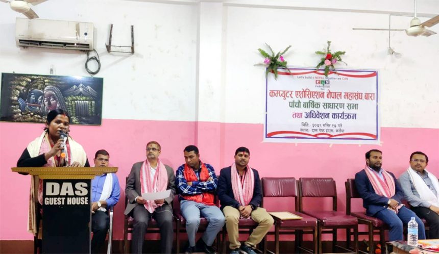 कम्पयूटर एशोसिएशन नेपाल महासंघ बाराको ५ औ बार्षिक सधारणसभा सभा एवम जिल्ला अधिवेशनको कलैयामा उदघाटन गर्दै मुलुकको बिकास र समृद्धिमा कम्प्यूटरको माध्यम सुचना एवम संचारले महत्व भुमिका खेलि रहेको बताउदै मुलुकको हरेक काम अव कम्पयूटरको माध्यबाट गर्ने भएको हुदा समयको बचत हुनुको साथसाथै दसताबेज पनि खोजेको समयमा तुरन्तै लिन सक्ने हिसावले कम्पयूटरले महत्वपुर्ण भुमिका खेलिरहेको बताईन ।