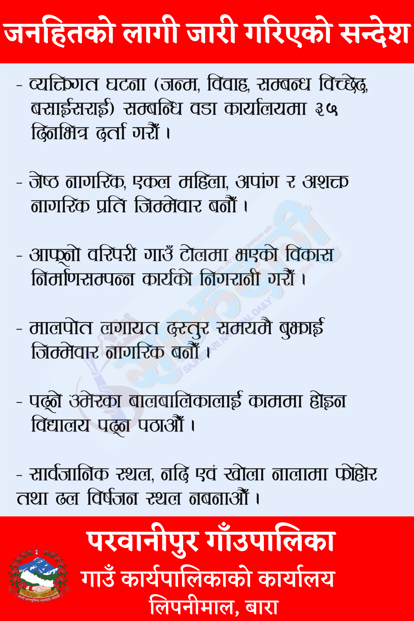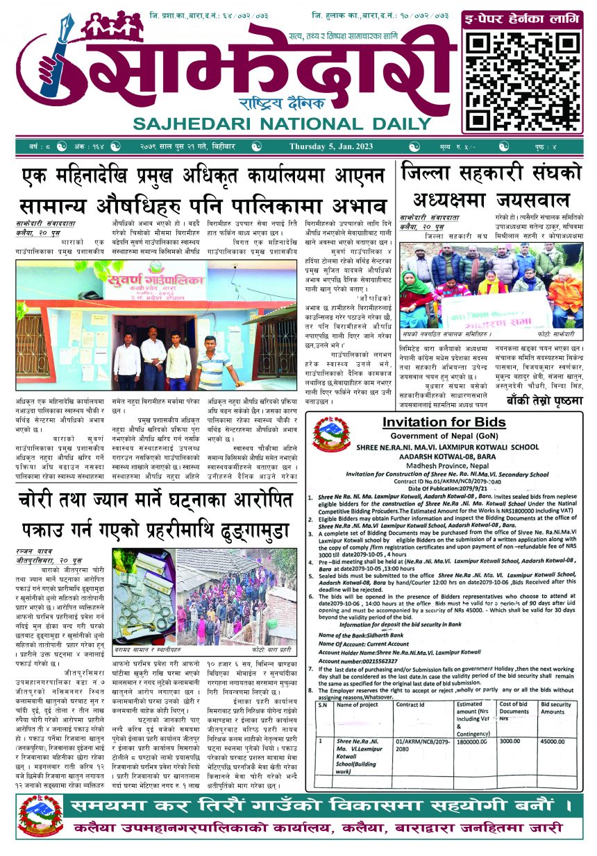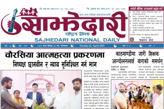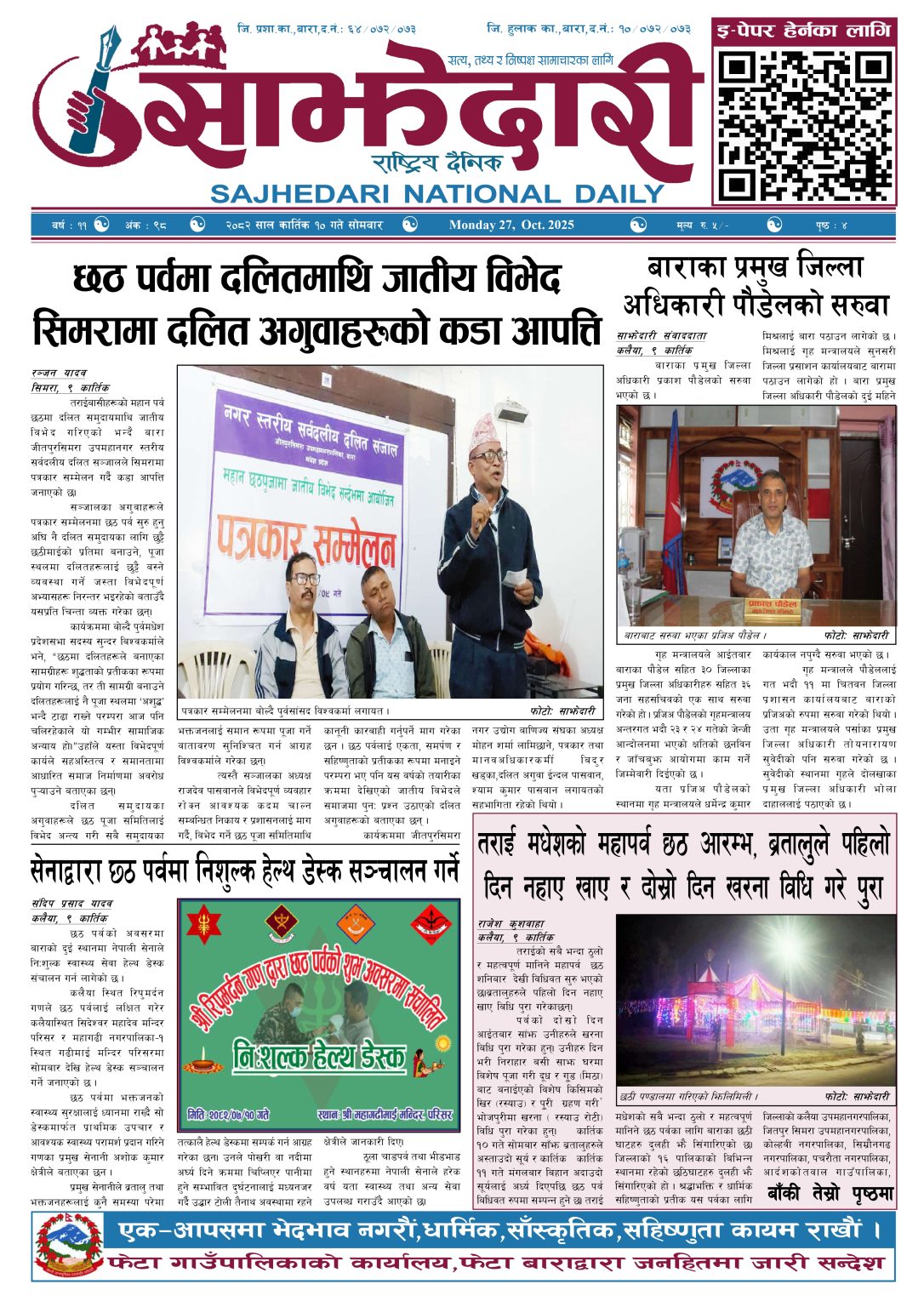 ई–पेपर २०७९ पुस २१ गते । साझेदारी दैनिक साझेदारी दैनिक २०७९ पुष २१, गते 561 पाठक संख्या शेयर Leave a review Leave a review Leave a Review Cancel replyYour email address will not be published. Required fields are marked * Please select a rating! Your Rating Rate… Perfect Good Average Not that Bad Very Poor Your Comment *नाम * Your Email * Your website Save my name, email, and website in this browser for the next time I comment. ताजा अपडेट छठ पर्वको तेस्रो दिन आज अस्ताउदो सूर्यलाई दिइयो अर्घ्य समाचार मधेश प्रदेशका मुख्यमन्त्री सोनलद्वारा छठ पर्वको शुभकामना मधेश समाचार छठ पर्वको मुख्य दिन : ब्रतालुहरू आज साँझ अस्ताउँदो सूर्यलाई अर्घ्य दिइदै मधेश मुख्य समाचार समाचार निर्वाचनलाई सफल बनाउन प्रधानमन्त्रीको आह्वान समाचार छठको तेस्रोदिन आज ‘सझुका अरख’ मधेश समाचार छठ पर्वमा दलितमाथि जातीय विभेद,सिमरामा दलित अगुवाहरूको कडा आपत्ति मधेश मुख्य समाचार समाचार २०८२ कार्तिक १० गते । साझेदारी दैनिक ई–पेपर मुख्य समाचार छठीसहित इष्टदेवलाई पूजाआराधना गरी खरना विधि सम्पन्न मधेश समाचार छठ पर्वमा भक्तजनलाई लक्षित गरी सेनाद्वारा बारामा नि:शुल्क हेल्थ डेस्क सञ्चालन गरिने मधेश मुख्य समाचार समाचार बाराका सिडिओ पौडेलको सरुवा,धरेन्द्र कुमार मिश्र आउदै मधेश मुख्य समाचार समाचार पर्सामा छठघाट सजाइयो मधेश मुख्य समाचार समाचार दाजुबहिनीको प्रेम प्रतीकको रुपमा रहेको समाचकेवा पर्व सुरु मधेश मुख्य समाचार समाचार प्रदेश समाचार छठको दोस्रो दिन आज ‘खरना’ मधेश समाचार वीरगञ्ज समाज सेवाद्वारा नारायणी अस्पतालमा निशुल्क भोजन प्रदान मधेश समाचार नकआउट फुटबल प्रतियोगिताको उपाधि रौतहट बनबहुअरीको पोल्टामा खेलकुद मधेश समाचार कलैयामा आतंक मच्चाउने बहुला कुकुरलाई बारा प्रहरीले लियो नियन्त्रणमा मधेश मुख्य समाचार समाचार छठ पर्वअन्तर्गत पहिलो दिन नहाय खाय विधि सम्पन्न मधेश समाचार
