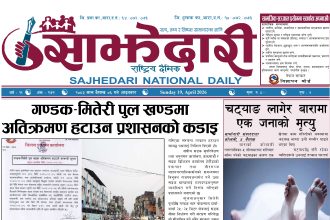 ई–पेपर २०७९ माघ ०५ गते । साझेदारी दैनिक साझेदारी दैनिक २०७९ माघ ६, गते 497 पाठक संख्या शेयर शेयर Leave a review Leave a review Leave a Review Cancel replyYour email address will not be published. Required fields are marked * Please select a rating! Your Rating Rate… Perfect Good Average Not that Bad Very Poor Your Comment *नाम * Your Email * Your website Save my name, email, and website in this browser for the next time I comment. ताजा अपडेट पेट्रोलियम पदार्थमा गरिएको मूल्य वृद्धि फिर्ता लिन अध्यक्ष घिसिङको माग समाचार पर्सा राष्ट्रिय निकुञ्जमा वन्यजन्तु उद्धार केन्द्र उद्घाटन मधेश समाचार कलैयामा खसी मासुको छालासहित र बिना छालाको छुट्टाछुट्टै मूल्य निर्धारण मधेश समाचार सिम्रौनगढमा छाडा कुकुरको आतंक : एकै घरका ८ खसी-बाख्रा मरे मधेश मुख्य समाचार समाचार २०८३ वैशाख ०७ गते । साझेदारी दैनिक ई–पेपर रेल्वे सेवा ७९ करोड ऋणमा मधेश समाचार सडक विस्तारले वीरगञ्जको विद्युत् अवरुद्ध मधेश मुख्य समाचार समाचार मुख्य समाचार बाईपास विस्तारका लागि २४ घण्टाभित्र संरचना हटाउन वीरगञ्ज महानगरको निर्देशन मधेश मुख्य समाचार समाचार वीरगञ्जमा भर्ना अभियान वैशाख ७ गतेदेखि सुरु हुने मधेश समाचार वीरगन्जमा अतिक्रमित संरचना भत्काउन सुरु मधेश मुख्य समाचार समाचार जीतपुरसिमराको बिद्यालयमा पठनपाठन वैशाख १४ गते देखि सुरु हुने मधेश मुख्य समाचार समाचार करैयामाई -६ सिहोर्वामा नि:शुल्क स्वास्थ्य शिविर सम्पन्न मधेश समाचार स्वास्थ्य प्रदेश समाचार बारामा खेतबाट घर फर्किँदै गर्दा चट्याङ लागेर एक जनाको मृत्यु मधेश मुख्य समाचार समाचार बृन्दावनमा ६ सुकुम्बासी परिवार विस्थापित मधेश समाचार सुनसरीमा काँचो केरासहित चार जना पक्राउ मधेश मुख्य समाचार समाचार दुर्घटना न्यूनीकरणलाई केन्द्रमा राखेर काम गर्न डीआईजी थपलियाको निर्देशन मधेश मुख्य समाचार समाचार कलैयामा घरको ताला तोडेर करिब ५० लाख बराबरको चोरी मधेश मुख्य समाचार समाचार