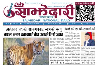 ई–पेपर २०८० बैशाख ०२ गते । साझेदारी दैनिक साझेदारी दैनिक २०८० बैशाख ३, गते 321 पाठक संख्या शेयर शेयर Leave a review Leave a review Leave a Review Cancel replyYour email address will not be published. Required fields are marked * Please select a rating! Your Rating Rate… Perfect Good Average Not that Bad Very Poor Your Comment *नाम * Your Email * Your website Save my name, email, and website in this browser for the next time I comment. ताजा अपडेट दुर्घटना न्यूनीकरणलाई केन्द्रमा राखेर काम गर्न डीआईजी थपलियाको निर्देशन मधेश मुख्य समाचार समाचार कलैयामा घरको ताला तोडेर करिब ५० लाख बराबरको चोरी मधेश मुख्य समाचार समाचार प्रधानमन्त्री कप क्रिकेटको उपाधि त्रिभुवन आर्मी क्लबलाई खेलकुद मधेश मुख्य समाचार समाचार लागुऔषधसहित विभिन्न स्थानबाट २४ जना पक्राउ प्रदेश समाचार समाचार सुनचाँदीको मूल्य घट्यो समाचार भन्सार छली प्रकरणः तीन जनाविरुद्ध अदालतमा मुद्दा, मुख्य अभियुक्तबाट २ करोडभन्दा बढी बिगो दाबी मधेश मुख्य समाचार समाचार जीतपुरको गौशाला जग्गा अतिक्रमण घरटहरा हटाइयो मधेश मुख्य समाचार समाचार मुख्य समाचार बारामा भूतपूर्व सैनिक पुनर्मिलन कार्यक्रम सम्पन्न मधेश समाचार पाँच पटक भन्दाबढी ट्राफिक नियम उल्लंघन गर्नेको लाइसेन्स निलम्बन प्रक्रिया सुरु मधेश मुख्य समाचार समाचार बाराका दुई नगरपालिकामा नयाँ प्रमुख प्रशासकीय अधिकृत खटाइए मधेश मुख्य समाचार समाचार पर्सामा नागरिकतासँगै राष्ट्रिय परिचयपत्र मधेश मुख्य समाचार समाचार राजश्व अनुसन्धान कार्यालय पथलैयामा आगलागी, प्रमुखको कार्यकक्ष ध्वस्त मधेश समाचार प्रदेश समाचार भाडा वृद्धि पछि सिमरा-काठमाडौं उडानमा यात्रु घटे मधेश मुख्य समाचार समाचार बारामा साढे दुई महिनामा एक करोडभन्दा बढीको अवैध सामान बरामद मधेश मुख्य समाचार समाचार सांसद साहलाई जीतपुरसिमरा-१७ का वडाबासीद्वारा ध्यानाकर्षणपत्र बुझाइयो मधेश मुख्य समाचार समाचार प्रधानमन्त्री कपको आजको खेलमा मधेस प्रदेश विजयी खेलकुद मधेश समाचार स्थानीय तहसँग मागियो विद्यालय समायोजनको विवरण प्रदेश समाचार समाचार