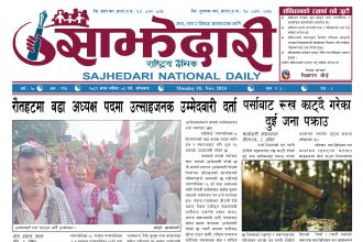ई–पेपर २०८० जेठ ०४ गते । साझेदारी दैनिक साझेदारी दैनिक २०८० जेष्ठ ४, गते 326 पाठक संख्या शेयर शेयर Leave a review Leave a review Leave a Review Cancel replyYour email address will not be published. Required fields are marked * Please select a rating! Your Rating Rate… Perfect Good Average Not that Bad Very Poor Your Comment *नाम * Your Email * Your website Save my name, email, and website in this browser for the next time I comment. ताजा अपडेट दुर्घटना न्यूनीकरणलाई केन्द्रमा राखेर काम गर्न डीआईजी थपलियाको निर्देशन मधेश मुख्य समाचार समाचार कलैयामा घरको ताला तोडेर करिब ५० लाख बराबरको चोरी मधेश मुख्य समाचार समाचार प्रधानमन्त्री कप क्रिकेटको उपाधि त्रिभुवन आर्मी क्लबलाई खेलकुद मधेश मुख्य समाचार समाचार लागुऔषधसहित विभिन्न स्थानबाट २४ जना पक्राउ प्रदेश समाचार समाचार सुनचाँदीको मूल्य घट्यो समाचार भन्सार छली प्रकरणः तीन जनाविरुद्ध अदालतमा मुद्दा, मुख्य अभियुक्तबाट २ करोडभन्दा बढी बिगो दाबी मधेश मुख्य समाचार समाचार जीतपुरको गौशाला जग्गा अतिक्रमण घरटहरा हटाइयो मधेश मुख्य समाचार समाचार मुख्य समाचार बारामा भूतपूर्व सैनिक पुनर्मिलन कार्यक्रम सम्पन्न मधेश समाचार पाँच पटक भन्दाबढी ट्राफिक नियम उल्लंघन गर्नेको लाइसेन्स निलम्बन प्रक्रिया सुरु मधेश मुख्य समाचार समाचार बाराका दुई नगरपालिकामा नयाँ प्रमुख प्रशासकीय अधिकृत खटाइए मधेश मुख्य समाचार समाचार पर्सामा नागरिकतासँगै राष्ट्रिय परिचयपत्र मधेश मुख्य समाचार समाचार राजश्व अनुसन्धान कार्यालय पथलैयामा आगलागी, प्रमुखको कार्यकक्ष ध्वस्त मधेश समाचार प्रदेश समाचार भाडा वृद्धि पछि सिमरा-काठमाडौं उडानमा यात्रु घटे मधेश मुख्य समाचार समाचार बारामा साढे दुई महिनामा एक करोडभन्दा बढीको अवैध सामान बरामद मधेश मुख्य समाचार समाचार सांसद साहलाई जीतपुरसिमरा-१७ का वडाबासीद्वारा ध्यानाकर्षणपत्र बुझाइयो मधेश मुख्य समाचार समाचार प्रधानमन्त्री कपको आजको खेलमा मधेस प्रदेश विजयी खेलकुद मधेश समाचार स्थानीय तहसँग मागियो विद्यालय समायोजनको विवरण प्रदेश समाचार समाचार
