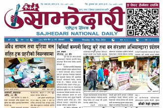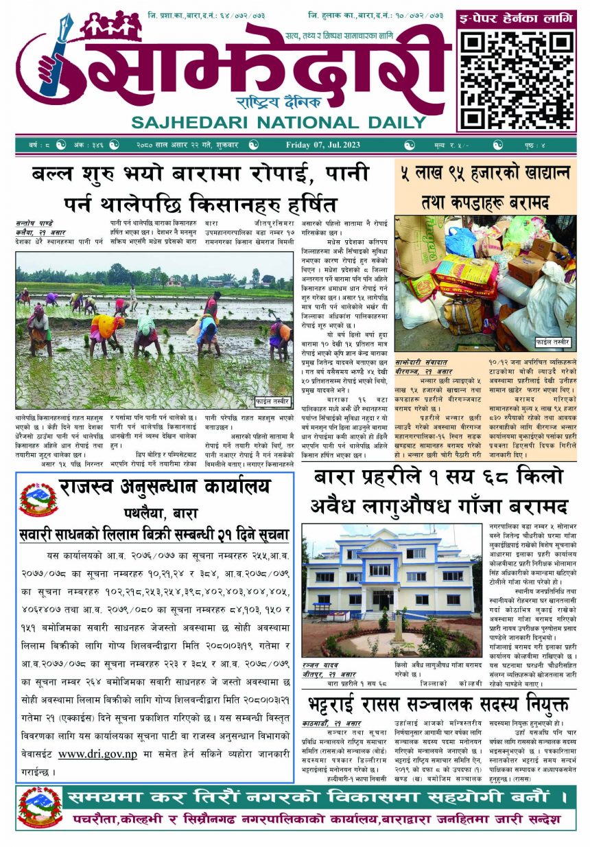 ई–पेपर २०८० असार २२ गते । साझेदारी दैनिक साझेदारी दैनिक २०८० असार २३, गते 308 पाठक संख्या शेयर शेयर Leave a review Leave a review Leave a Review Cancel replyYour email address will not be published. Required fields are marked * Please select a rating! Your Rating Rate… Perfect Good Average Not that Bad Very Poor Your Comment *नाम * Your Email * Your website Save my name, email, and website in this browser for the next time I comment. ताजा अपडेट पर्सामा लागूऔषध गाँजा जस्तो पदार्थसहित चार भारतीय नागरिक पक्राउ मधेश समाचार चक्कु प्रहार गरी युवकको हत्या समाचार बनावटी अडियो काण्ड : प्रहरी वरिष्ठ नायव निरीक्षक सागर शमसेर ज.ब.रा. निलम्बन प्रक्रियामा मधेश मुख्य समाचार समाचार १९ औं स्थापना दिवसको अवसरमा ३७ जनाद्वारा रक्तदान मधेश समाचार वीरगञ्ज भन्सारद्वारा नौ महिनामा एक खर्ब ७७ करोड राजस्व सङ्कलन मधेश समाचार व्यवसाय सञ्चालनमा पारदर्शिता र नियम पालना गर्न जीतपुरसिमरा उद्योग वाणिज्य संघको आग्रह मधेश समाचार पथलैया-चुरियामाई सडक क्षेत्रका संरचना हटाउन ३ दिनको अल्टिमेटम मधेश मुख्य समाचार समाचार मुख्य समाचार सिमरामा ‘केआईईसी’को नयाँ शाखा सञ्चालन,विदेश अध्ययन चाहने विद्यार्थीलाई सहज मधेश मुख्य समाचार समाचार पहिलेको निर्णय फेरियो : कलैयामा अब वैशाख १६ देखि कक्षा सुरु हुने मधेश मुख्य समाचार समाचार कलैयामा वैशाख १५ गतेदेखि भर्ना अभियान, २१ गतेदेखि पठनपाठन सुरु हुने मधेश मुख्य समाचार समाचार पर्सा राष्ट्रिय निकुञ्जमा वन्यजन्तु उद्धार केन्द्र उद्घाटन मधेश समाचार कलैयामा खसी मासुको छालासहित र बिना छालाको छुट्टाछुट्टै मूल्य निर्धारण मधेश समाचार प्रदेश समाचार सिम्रौनगढमा छाडा कुकुरको आतंक : एकै घरका ८ खसी-बाख्रा मरे मधेश मुख्य समाचार समाचार रेल्वे सेवा ७९ करोड ऋणमा मधेश समाचार सडक विस्तारले वीरगञ्जको विद्युत् अवरुद्ध मधेश मुख्य समाचार समाचार बाईपास विस्तारका लागि २४ घण्टाभित्र संरचना हटाउन वीरगञ्ज महानगरको निर्देशन मधेश मुख्य समाचार समाचार वीरगञ्जमा भर्ना अभियान वैशाख ७ गतेदेखि सुरु हुने मधेश समाचार