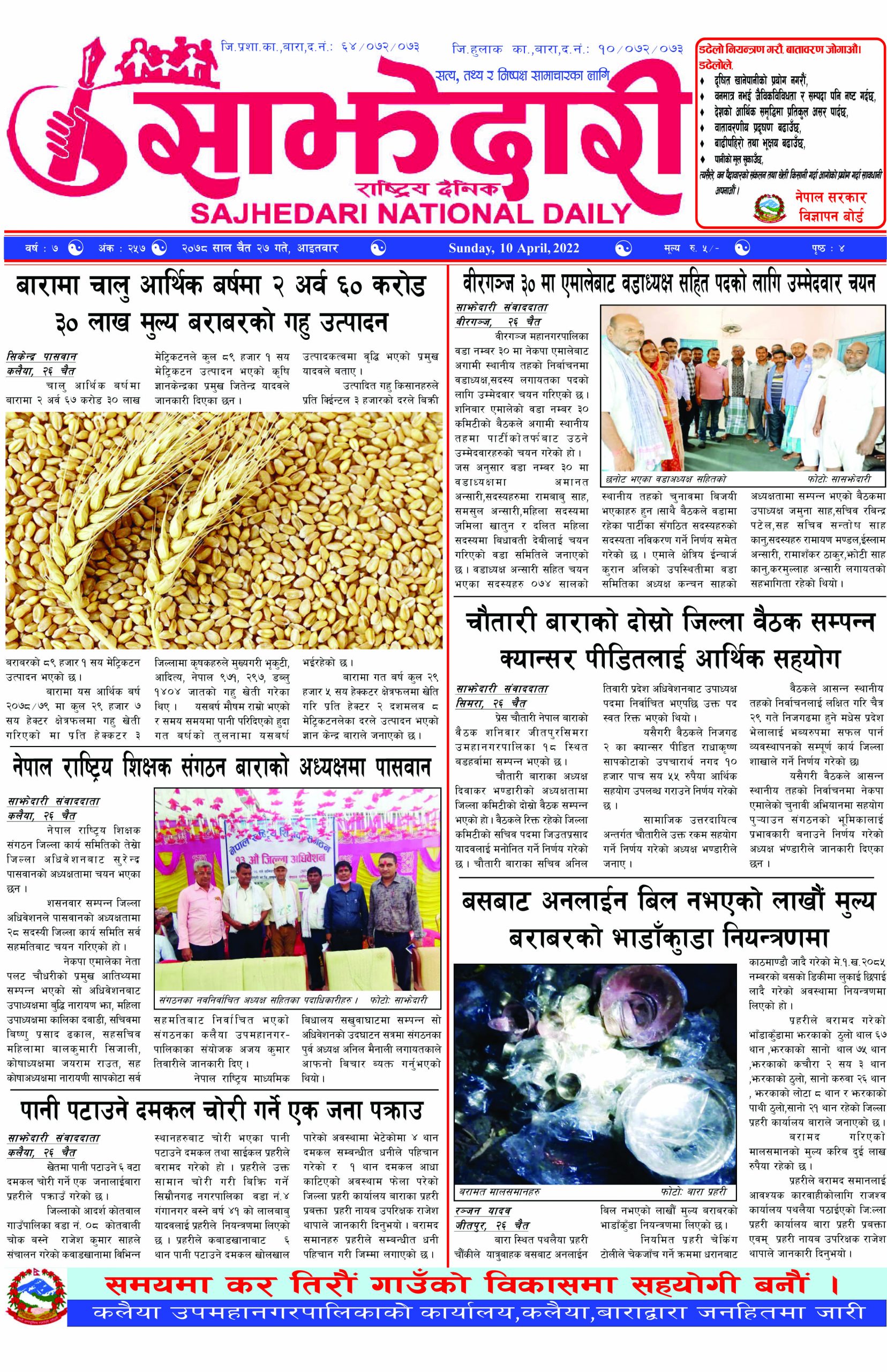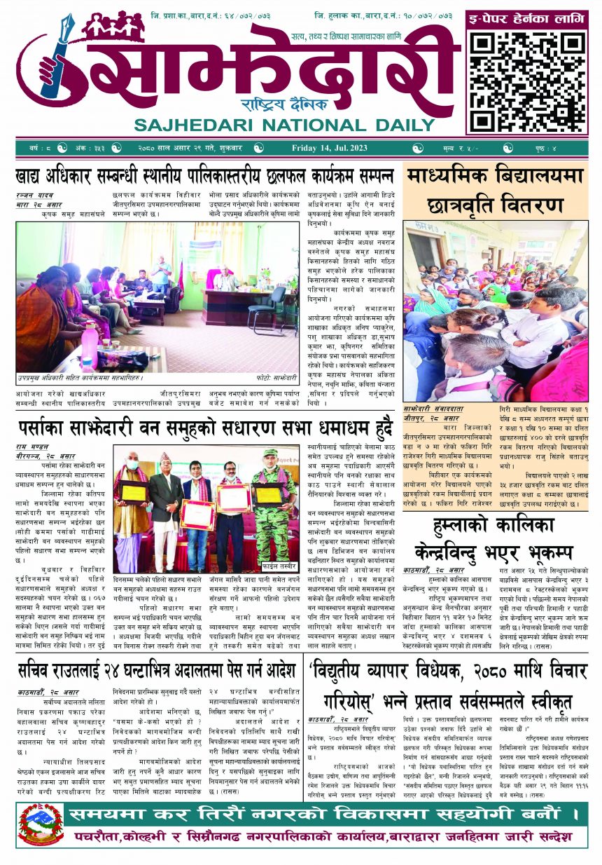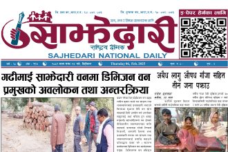 ई–पेपर २०८० असार २९ गते । साझेदारी दैनिक साझेदारी दैनिक २०८० असार २९, गते 344 पाठक संख्या शेयर शेयर Leave a review Leave a review Leave a Review Cancel replyYour email address will not be published. Required fields are marked * Please select a rating! Your Rating Rate… Perfect Good Average Not that Bad Very Poor Your Comment *नाम * Your Email * Your website Save my name, email, and website in this browser for the next time I comment. ताजा अपडेट प्रधानमन्त्री कप क्रिकेटको उपाधि त्रिभुवन आर्मी क्लबलाई खेलकुद मधेश मुख्य समाचार समाचार लागुऔषधसहित विभिन्न स्थानबाट २४ जना पक्राउ प्रदेश समाचार समाचार सुनचाँदीको मूल्य घट्यो समाचार भन्सार छली प्रकरणः तीन जनाविरुद्ध अदालतमा मुद्दा, मुख्य अभियुक्तबाट २ करोडभन्दा बढी बिगो दाबी मधेश मुख्य समाचार समाचार जीतपुरको गौशाला जग्गा अतिक्रमण घरटहरा हटाइयो मधेश मुख्य समाचार समाचार बारामा भूतपूर्व सैनिक पुनर्मिलन कार्यक्रम सम्पन्न मधेश समाचार २०८३ वैशाख ०४ गते । साझेदारी दैनिक ई–पेपर मुख्य समाचार पाँच पटक भन्दाबढी ट्राफिक नियम उल्लंघन गर्नेको लाइसेन्स निलम्बन प्रक्रिया सुरु मधेश मुख्य समाचार समाचार बाराका दुई नगरपालिकामा नयाँ प्रमुख प्रशासकीय अधिकृत खटाइए मधेश मुख्य समाचार समाचार पर्सामा नागरिकतासँगै राष्ट्रिय परिचयपत्र मधेश मुख्य समाचार समाचार राजश्व अनुसन्धान कार्यालय पथलैयामा आगलागी, प्रमुखको कार्यकक्ष ध्वस्त मधेश समाचार भाडा वृद्धि पछि सिमरा-काठमाडौं उडानमा यात्रु घटे मधेश मुख्य समाचार समाचार प्रदेश समाचार बारामा साढे दुई महिनामा एक करोडभन्दा बढीको अवैध सामान बरामद मधेश मुख्य समाचार समाचार सांसद साहलाई जीतपुरसिमरा-१७ का वडाबासीद्वारा ध्यानाकर्षणपत्र बुझाइयो मधेश मुख्य समाचार समाचार प्रधानमन्त्री कपको आजको खेलमा मधेस प्रदेश विजयी खेलकुद मधेश समाचार स्थानीय तहसँग मागियो विद्यालय समायोजनको विवरण प्रदेश समाचार समाचार होटेल करण राज प्यालेसमा आधुनिक सुविधासहित स्विमिङ पुल उद्घाटन मधेश मुख्य समाचार समाचार