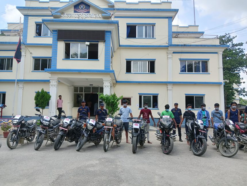 चोरी भएका बा २६ प ७७५३,ज ११ प ८४९५,ना ५१ प २७९०,ना ५२ प ७१३२,बिआर ०५ एफ ०६०३,बीआर ०५ ए ९०६२, ,ना ४१ प ८४६८,बा ९० प ५००८,मधेश प्रदेश ०३ -०२६ प ९९५६,बा ६४ प ४६८४ र दुईवटा अन टेस्ट नयाँ मोटरसाइकल नियन्त्रणमा लिएको प्रहरीले जनाएको छ ।