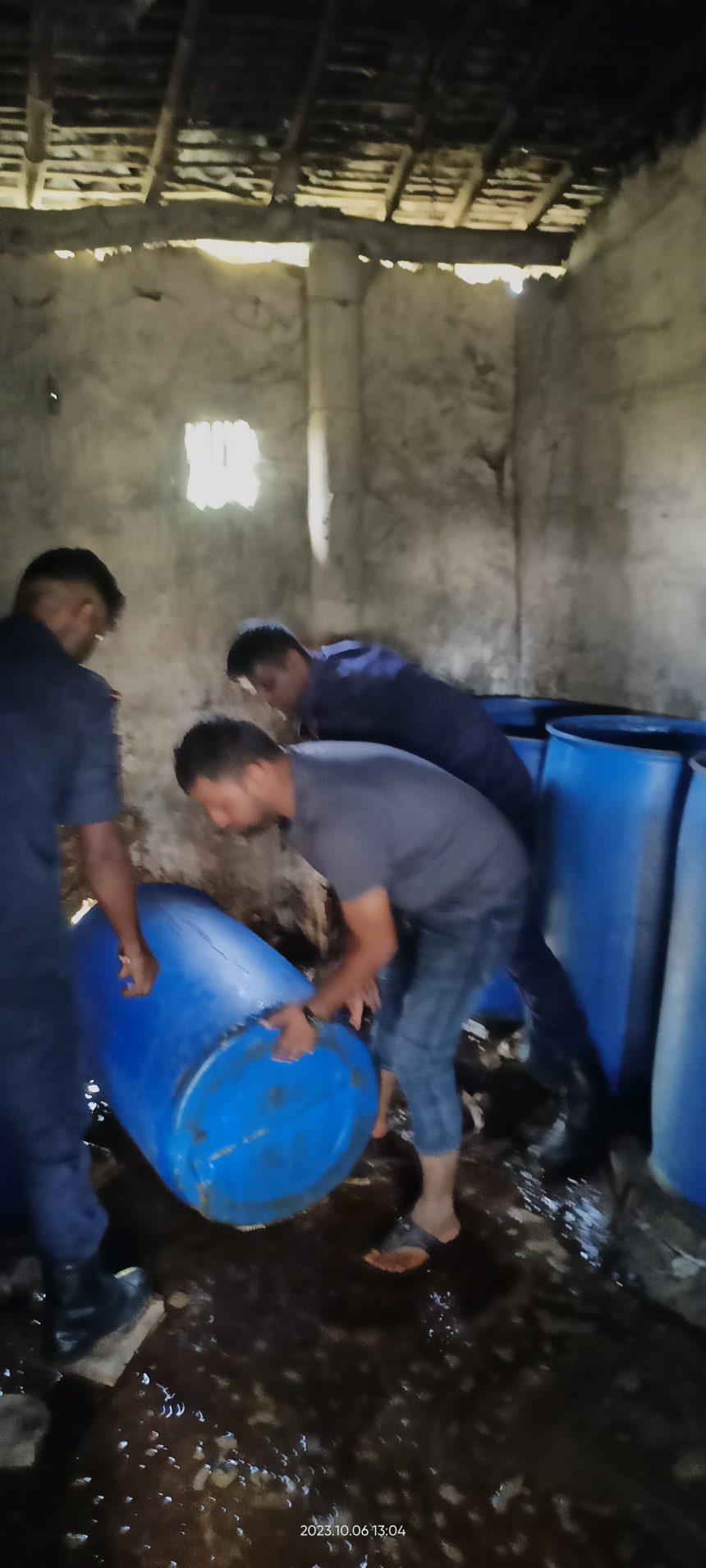 साथै प्रहरीले भट्टी भत्काई .मदिरा राख्ने सानो ड्रम ११ वटा, ठुलो ड्रम २३ वटा र मदिरा तयार पार्ने मेशिन २ वटा नियन्त्रणमा लिएको उनले बताए ।