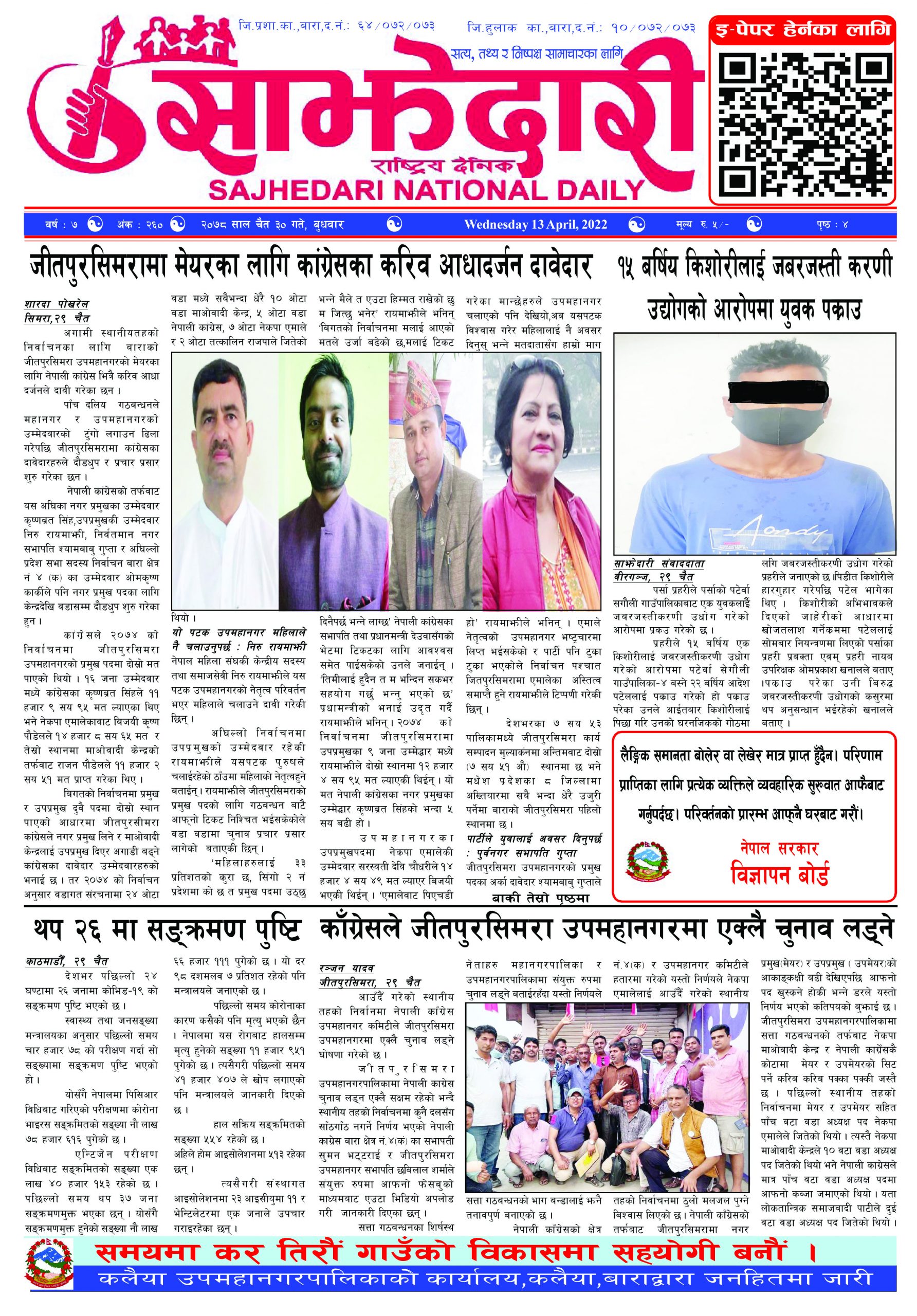 ई–पेपर २०८० मंसिर ०९ गते । साझेदारी दैनिक साझेदारी दैनिक २०८० मंसिर ९, गते 340 पाठक संख्या शेयर शेयर Leave a review Leave a review Leave a Review Cancel replyYour email address will not be published. Required fields are marked * Please select a rating! Your Rating Rate… Perfect Good Average Not that Bad Very Poor Your Comment *नाम * Your Email * Your website Save my name, email, and website in this browser for the next time I comment. ताजा अपडेट २०८३ वैशाख ०५ गते । साझेदारी दैनिक ई–पेपर दुर्घटना न्यूनीकरणलाई केन्द्रमा राखेर काम गर्न डीआईजी थपलियाको निर्देशन मधेश मुख्य समाचार समाचार कलैयामा घरको ताला तोडेर करिब ५० लाख बराबरको चोरी मधेश मुख्य समाचार समाचार प्रधानमन्त्री कप क्रिकेटको उपाधि त्रिभुवन आर्मी क्लबलाई खेलकुद मधेश मुख्य समाचार समाचार लागुऔषधसहित विभिन्न स्थानबाट २४ जना पक्राउ प्रदेश समाचार समाचार सुनचाँदीको मूल्य घट्यो समाचार भन्सार छली प्रकरणः तीन जनाविरुद्ध अदालतमा मुद्दा, मुख्य अभियुक्तबाट २ करोडभन्दा बढी बिगो दाबी मधेश मुख्य समाचार समाचार मुख्य समाचार जीतपुरको गौशाला जग्गा अतिक्रमण घरटहरा हटाइयो मधेश मुख्य समाचार समाचार बारामा भूतपूर्व सैनिक पुनर्मिलन कार्यक्रम सम्पन्न मधेश समाचार पाँच पटक भन्दाबढी ट्राफिक नियम उल्लंघन गर्नेको लाइसेन्स निलम्बन प्रक्रिया सुरु मधेश मुख्य समाचार समाचार बाराका दुई नगरपालिकामा नयाँ प्रमुख प्रशासकीय अधिकृत खटाइए मधेश मुख्य समाचार समाचार पर्सामा नागरिकतासँगै राष्ट्रिय परिचयपत्र मधेश मुख्य समाचार समाचार प्रदेश समाचार राजश्व अनुसन्धान कार्यालय पथलैयामा आगलागी, प्रमुखको कार्यकक्ष ध्वस्त मधेश समाचार भाडा वृद्धि पछि सिमरा-काठमाडौं उडानमा यात्रु घटे मधेश मुख्य समाचार समाचार बारामा साढे दुई महिनामा एक करोडभन्दा बढीको अवैध सामान बरामद मधेश मुख्य समाचार समाचार सांसद साहलाई जीतपुरसिमरा-१७ का वडाबासीद्वारा ध्यानाकर्षणपत्र बुझाइयो मधेश मुख्य समाचार समाचार प्रधानमन्त्री कपको आजको खेलमा मधेस प्रदेश विजयी खेलकुद मधेश समाचार