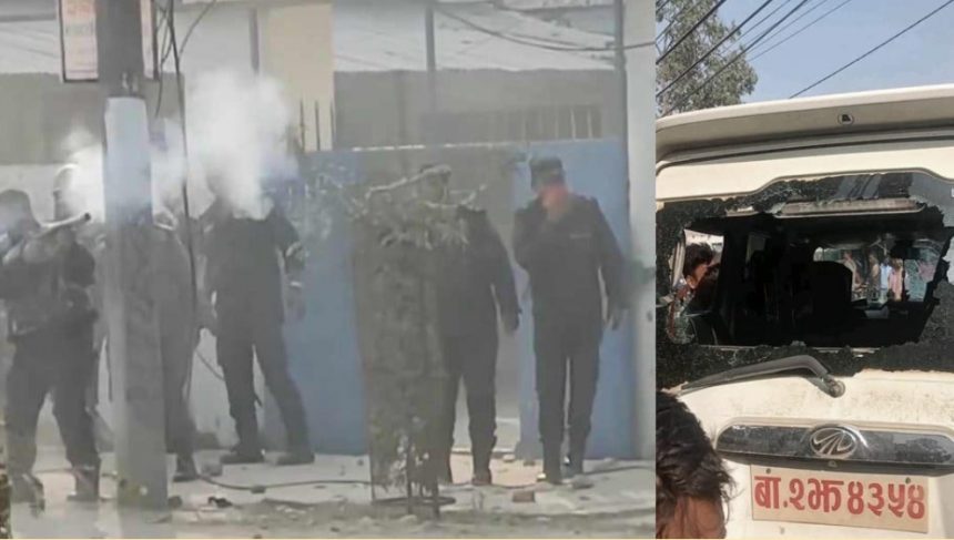 नगरपालिकामा भएको विवाद नियन्त्रण गर्न प्रहरीले दर्जनौं हवाइफायर तथा अश्रुग्याँस प्रहार गरेको स्थानीयबासीले जनाएका छन् ।