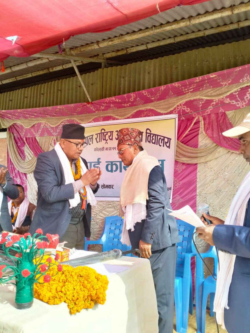 कार्यक्रममा कोल्हबी नगरपालिकाको नगरप्रमुख रामप्रसाद चौधरीले शिक्षक चौधरीलाई विदाई गराएका हुन । कार्यक्रमका प्रमुख अतिथी समेत रहेका नगरप्रमुख चौधरीले दोसल्ला र माला लगाएर शिक्षक चौधरीको विदाई गरेका थिए ।