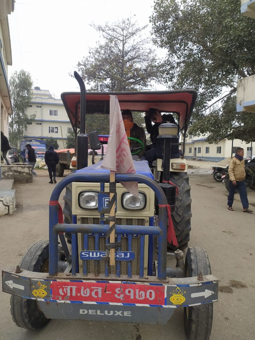 ईलाका प्रहरी कार्यालय महेन्द्रआदर्शबाट खटिएको प्रहरी टोलिले मंगलवार बाराको आदर्शकोतवाल गाँउपालिका वडा नं.६ पटेर्वा स्थित मौलापुरबाट सिम्रौनगढतर्फ जाँदै गरेको ट्याक्टरलाई रोकी जाँच गर्ने क्रममा ट्याक्टरको कुनै पनि आधिकारिक पत्र तथा सिफारिस नभएकोले उक्त ट्याक्टरलाई नियन्त्रणमा लिइएको हो ।
