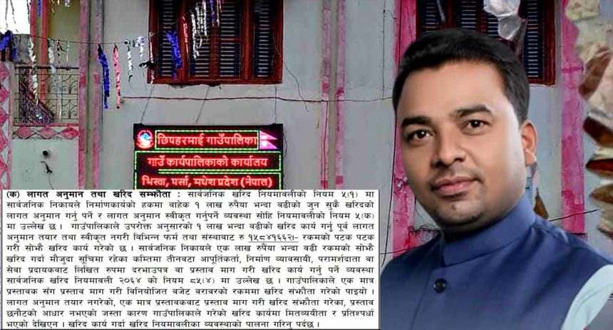 पर्साको छिपहरमाई गाउँपालिकामा लाखौं रुपैयाँ अनियमितता भएको पाईएको छ ।