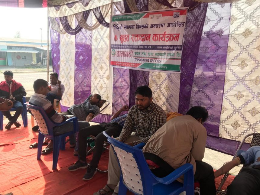 तामागढी बचत तथा ऋण सहकारी संस्था कोल्हवीले आफ्नो १६ औं स्थापना दिवसका अवसरमा आज वृहद रक्तदान कार्यक्रमको आयोजना गरेको छ।