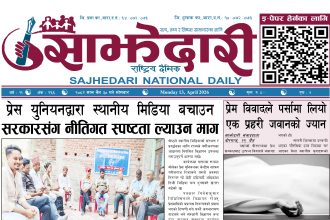 ई–पेपर २०८० फागुन १८ गते । साझेदारी दैनिक साझेदारी दैनिक २०८० फाल्गुन १८, गते 1.1k पाठक संख्या शेयर २०८० फागुन १८ गते । साझेदारी दैनिक शेयर Leave a review Leave a review Leave a Review Cancel replyYour email address will not be published. Required fields are marked * Please select a rating! Your Rating Rate… Perfect Good Average Not that Bad Very Poor Your Comment *नाम * Your Email * Your website Save my name, email, and website in this browser for the next time I comment. ताजा अपडेट लागुऔषधसहित विभिन्न स्थानबाट २४ जना पक्राउ प्रदेश समाचार समाचार सुनचाँदीको मूल्य घट्यो समाचार भन्सार छली प्रकरणः तीन जनाविरुद्ध अदालतमा मुद्दा, मुख्य अभियुक्तबाट २ करोडभन्दा बढी बिगो दाबी मधेश मुख्य समाचार समाचार जीतपुरको गौशाला जग्गा अतिक्रमण घरटहरा हटाइयो मधेश मुख्य समाचार समाचार बारामा भूतपूर्व सैनिक पुनर्मिलन कार्यक्रम सम्पन्न मधेश समाचार २०८३ वैशाख ०४ गते । साझेदारी दैनिक ई–पेपर पाँच पटक भन्दाबढी ट्राफिक नियम उल्लंघन गर्नेको लाइसेन्स निलम्बन प्रक्रिया सुरु मधेश मुख्य समाचार समाचार मुख्य समाचार बाराका दुई नगरपालिकामा नयाँ प्रमुख प्रशासकीय अधिकृत खटाइए मधेश मुख्य समाचार समाचार पर्सामा नागरिकतासँगै राष्ट्रिय परिचयपत्र मधेश मुख्य समाचार समाचार राजश्व अनुसन्धान कार्यालय पथलैयामा आगलागी, प्रमुखको कार्यकक्ष ध्वस्त मधेश समाचार भाडा वृद्धि पछि सिमरा-काठमाडौं उडानमा यात्रु घटे मधेश मुख्य समाचार समाचार बारामा साढे दुई महिनामा एक करोडभन्दा बढीको अवैध सामान बरामद मधेश मुख्य समाचार समाचार प्रदेश समाचार सांसद साहलाई जीतपुरसिमरा-१७ का वडाबासीद्वारा ध्यानाकर्षणपत्र बुझाइयो मधेश मुख्य समाचार समाचार प्रधानमन्त्री कपको आजको खेलमा मधेस प्रदेश विजयी खेलकुद मधेश समाचार स्थानीय तहसँग मागियो विद्यालय समायोजनको विवरण प्रदेश समाचार समाचार होटेल करण राज प्यालेसमा आधुनिक सुविधासहित स्विमिङ पुल उद्घाटन मधेश मुख्य समाचार समाचार रिलायन्स सुगर एण्ड केमिकल इन्डस्ट्रिजद्वारा उखु क्रसिङ सिजन समापन मधेश मुख्य समाचार समाचार