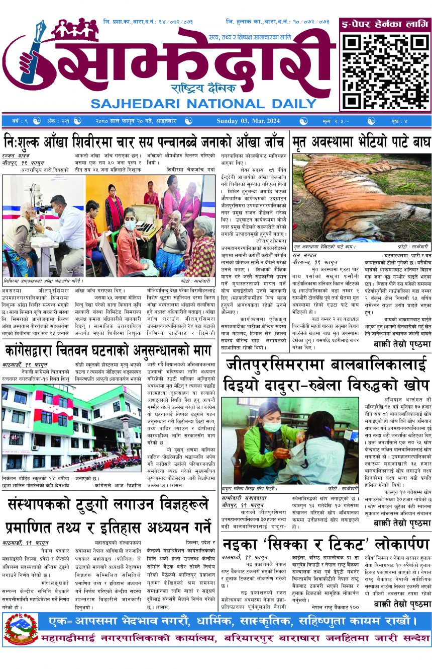 ई–पेपर २०८० फागुन २० गते । साझेदारी दैनिक साझेदारी दैनिक २०८० फाल्गुन २४, गते 305 पाठक संख्या शेयर शेयर Leave a review Leave a review Leave a Review Cancel replyYour email address will not be published. Required fields are marked * Please select a rating! Your Rating Rate… Perfect Good Average Not that Bad Very Poor Your Comment *नाम * Your Email * Your website Save my name, email, and website in this browser for the next time I comment. ताजा अपडेट २०८३ वैशाख ०५ गते । साझेदारी दैनिक ई–पेपर दुर्घटना न्यूनीकरणलाई केन्द्रमा राखेर काम गर्न डीआईजी थपलियाको निर्देशन मधेश मुख्य समाचार समाचार कलैयामा घरको ताला तोडेर करिब ५० लाख बराबरको चोरी मधेश मुख्य समाचार समाचार प्रधानमन्त्री कप क्रिकेटको उपाधि त्रिभुवन आर्मी क्लबलाई खेलकुद मधेश मुख्य समाचार समाचार लागुऔषधसहित विभिन्न स्थानबाट २४ जना पक्राउ प्रदेश समाचार समाचार सुनचाँदीको मूल्य घट्यो समाचार भन्सार छली प्रकरणः तीन जनाविरुद्ध अदालतमा मुद्दा, मुख्य अभियुक्तबाट २ करोडभन्दा बढी बिगो दाबी मधेश मुख्य समाचार समाचार मुख्य समाचार जीतपुरको गौशाला जग्गा अतिक्रमण घरटहरा हटाइयो मधेश मुख्य समाचार समाचार बारामा भूतपूर्व सैनिक पुनर्मिलन कार्यक्रम सम्पन्न मधेश समाचार पाँच पटक भन्दाबढी ट्राफिक नियम उल्लंघन गर्नेको लाइसेन्स निलम्बन प्रक्रिया सुरु मधेश मुख्य समाचार समाचार बाराका दुई नगरपालिकामा नयाँ प्रमुख प्रशासकीय अधिकृत खटाइए मधेश मुख्य समाचार समाचार पर्सामा नागरिकतासँगै राष्ट्रिय परिचयपत्र मधेश मुख्य समाचार समाचार प्रदेश समाचार राजश्व अनुसन्धान कार्यालय पथलैयामा आगलागी, प्रमुखको कार्यकक्ष ध्वस्त मधेश समाचार भाडा वृद्धि पछि सिमरा-काठमाडौं उडानमा यात्रु घटे मधेश मुख्य समाचार समाचार बारामा साढे दुई महिनामा एक करोडभन्दा बढीको अवैध सामान बरामद मधेश मुख्य समाचार समाचार सांसद साहलाई जीतपुरसिमरा-१७ का वडाबासीद्वारा ध्यानाकर्षणपत्र बुझाइयो मधेश मुख्य समाचार समाचार प्रधानमन्त्री कपको आजको खेलमा मधेस प्रदेश विजयी खेलकुद मधेश समाचार