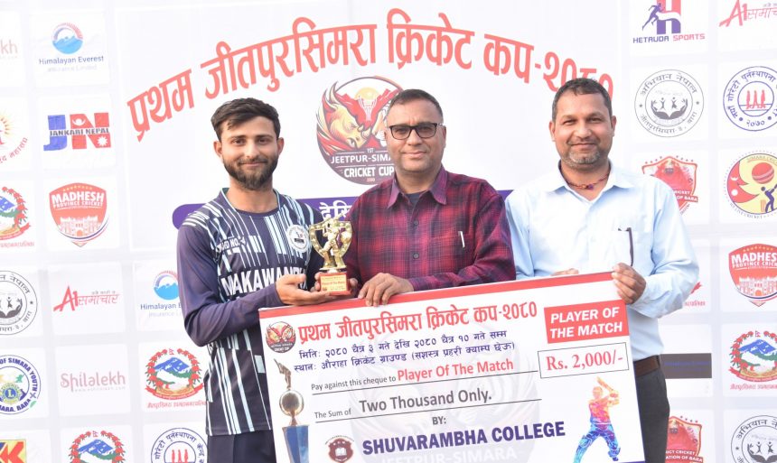 बाराको सिमरास्थित सेज खेल मैदानमा सञ्चालित प्रथम जीतपुरसिमरा क्रिकेट कप प्रतियोगितामा मकवानपुर विजयी भएको छ ।