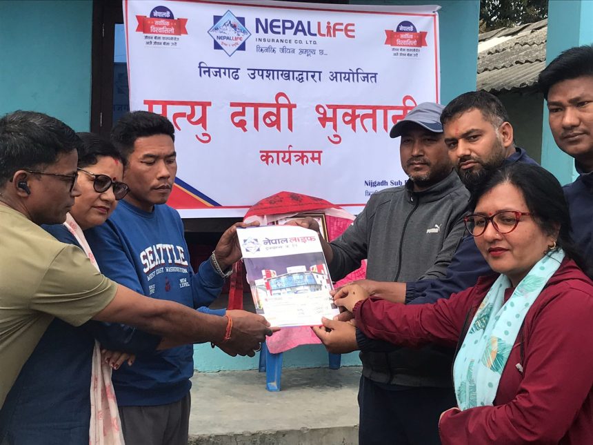 नेपाल लाइफ ई.क.लि.निजगढ शाखाले शुक्रबार स्व.गोलेको परिवारको घरदैलोमै गएर एक कार्यक्रम बिच मृत्यु दाबी रकम भुक्तानी गरेको छ ।