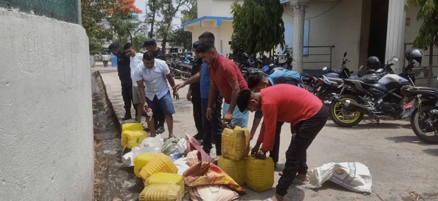 पर्सा प्रहरीले जाँचको क्रममा नियन्त्रणमा लिएको अबैध घरेलु मदिरा बरामद गरी नष्ट गरेको छ ।