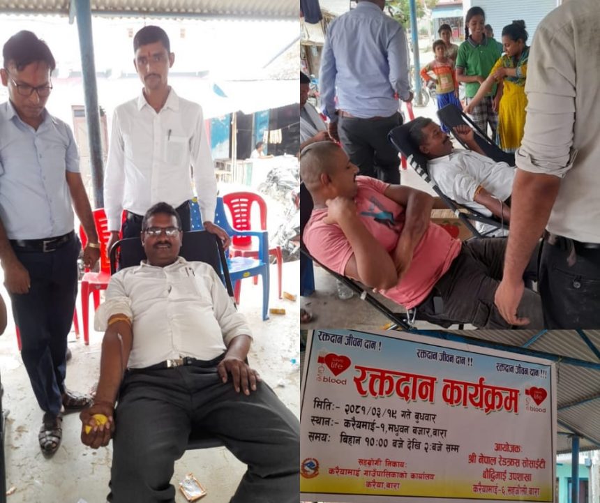 करैयामाई गाउँपालिकाको कार्यालय करैयामाईको सहयोगमा नेपाल रेडक्रस सोसाइटी बौद्धिमाई उपशाखा करैयामाई ६ सहजौली बाराको आयोजनामा मधुवन बजारमा सो रक्तदान भएको हो ।