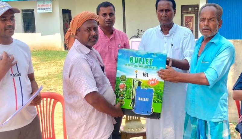 सो अवसरमा पटेर्वा सुगौली गाउँपालिका वडा नम्बर ५ निचुटाका किसानहरुलाई सिंचाइका लागि विद्युतीय मोटर,विषादी छर्कने स्प्रे ट्यांकी,डिजिटल तराजु र जिंक जाइम वितरण गरेको हो।