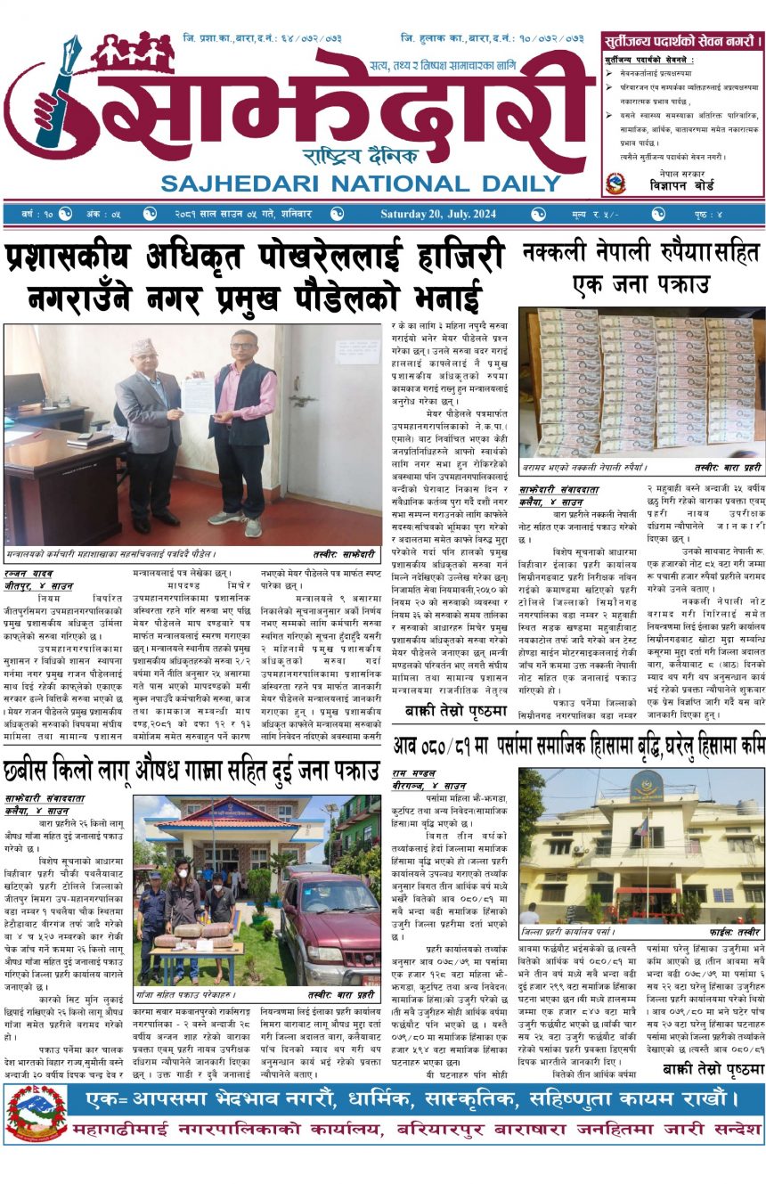 ई–पेपर २०८१ साउन ०५ गते । साझेदारी दैनिक साझेदारी दैनिक २०८१ श्रावण ५, गते 263 पाठक संख्या शेयर शेयर Leave a review Leave a review Leave a Review Cancel replyYour email address will not be published. Required fields are marked * Please select a rating! Your Rating Rate… Perfect Good Average Not that Bad Very Poor Your Comment *नाम * Your Email * Your website Save my name, email, and website in this browser for the next time I comment. ताजा अपडेट पर्सामा ३० हजार ट्रामाडोल ट्याब्लेटसहित भारतीय नागरिक पक्राउ मधेश समाचार तेइस लाख बालकालिकालाई भिटामिन ‘ए’ खुवाइयो समाचार स्वास्थ्य पर्सामा लागूऔषध गाँजा जस्तो पदार्थसहित चार भारतीय नागरिक पक्राउ मधेश समाचार चक्कु प्रहार गरी युवकको हत्या समाचार बनावटी अडियो काण्ड : प्रहरी वरिष्ठ नायव निरीक्षक सागर शमसेर ज.ब.रा. निलम्बन प्रक्रियामा मधेश मुख्य समाचार समाचार १९ औं स्थापना दिवसको अवसरमा ३७ जनाद्वारा रक्तदान मधेश समाचार वीरगञ्ज भन्सारद्वारा नौ महिनामा एक खर्ब ७७ करोड राजस्व सङ्कलन मधेश समाचार मुख्य समाचार व्यवसाय सञ्चालनमा पारदर्शिता र नियम पालना गर्न जीतपुरसिमरा उद्योग वाणिज्य संघको आग्रह मधेश समाचार पथलैया-चुरियामाई सडक क्षेत्रका संरचना हटाउन ३ दिनको अल्टिमेटम मधेश मुख्य समाचार समाचार सिमरामा ‘केआईईसी’को नयाँ शाखा सञ्चालन,विदेश अध्ययन चाहने विद्यार्थीलाई सहज मधेश मुख्य समाचार समाचार पहिलेको निर्णय फेरियो : कलैयामा अब वैशाख १६ देखि कक्षा सुरु हुने मधेश मुख्य समाचार समाचार कलैयामा वैशाख १५ गतेदेखि भर्ना अभियान, २१ गतेदेखि पठनपाठन सुरु हुने मधेश मुख्य समाचार समाचार प्रदेश समाचार पर्सा राष्ट्रिय निकुञ्जमा वन्यजन्तु उद्धार केन्द्र उद्घाटन मधेश समाचार कलैयामा खसी मासुको छालासहित र बिना छालाको छुट्टाछुट्टै मूल्य निर्धारण मधेश समाचार सिम्रौनगढमा छाडा कुकुरको आतंक : एकै घरका ८ खसी-बाख्रा मरे मधेश मुख्य समाचार समाचार रेल्वे सेवा ७९ करोड ऋणमा मधेश समाचार सडक विस्तारले वीरगञ्जको विद्युत् अवरुद्ध मधेश मुख्य समाचार समाचार