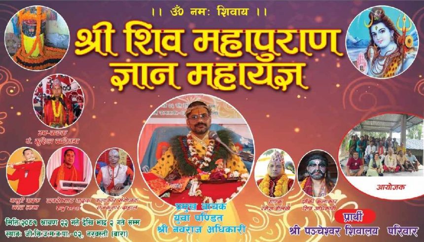 पञ्चेश्वर महादेव मन्दिरको आयोजनामा वडा नम्बर २ नरबस्तिस्थित श्री पञ्चेश्वर शिवालय मन्दिरमा सो शिव महापुराण ज्ञान महायज्ञ हुने भएको हो ।