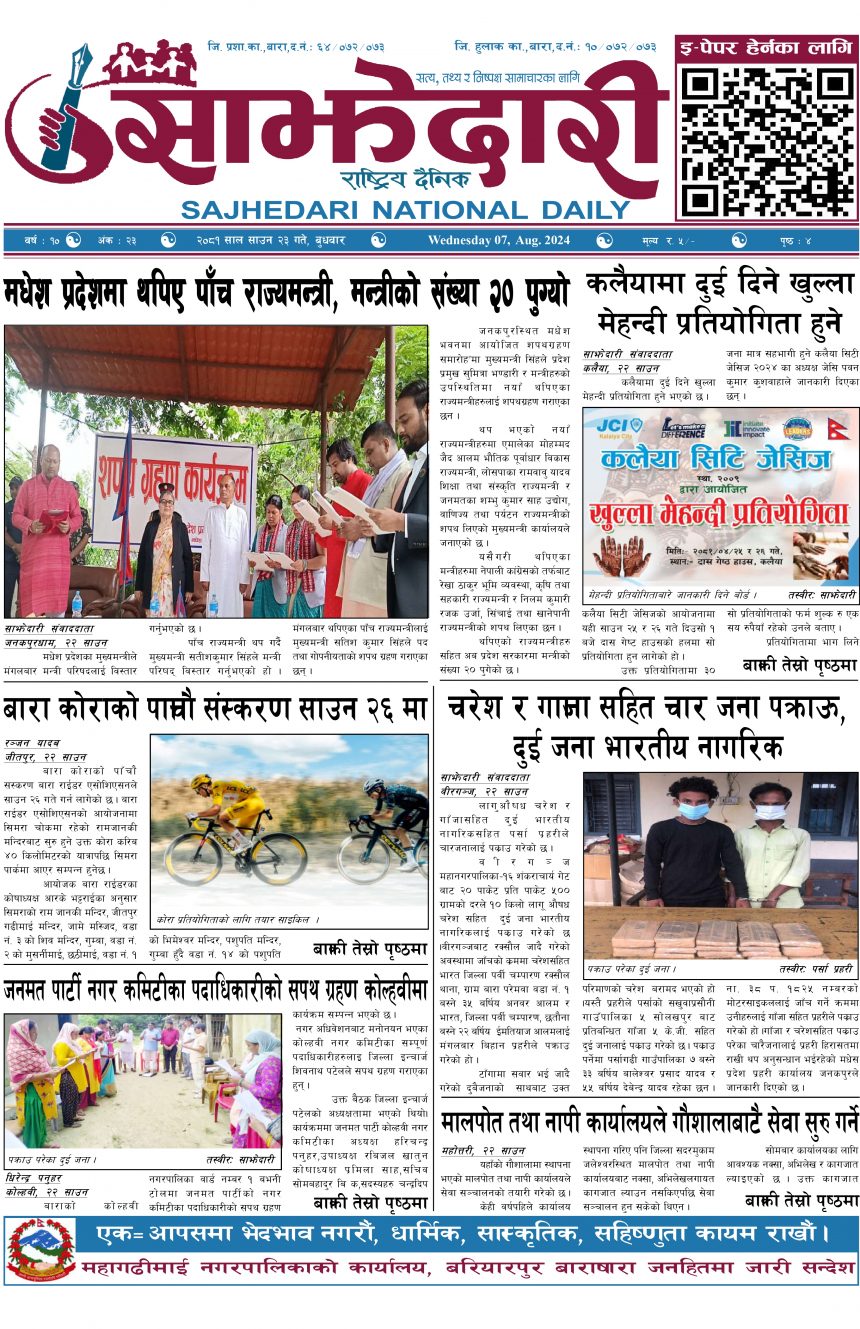 ई–पेपर २०८१ साउन २३ गते । साझेदारी दैनिक साझेदारी दैनिक २०८१ श्रावण २३, गते 349 पाठक संख्या शेयर शेयर Leave a review Leave a review Leave a Review Cancel replyYour email address will not be published. Required fields are marked * Please select a rating! Your Rating Rate… Perfect Good Average Not that Bad Very Poor Your Comment *नाम * Your Email * Your website Save my name, email, and website in this browser for the next time I comment. ताजा अपडेट २०८३ वैशाख ०५ गते । साझेदारी दैनिक ई–पेपर दुर्घटना न्यूनीकरणलाई केन्द्रमा राखेर काम गर्न डीआईजी थपलियाको निर्देशन मधेश मुख्य समाचार समाचार कलैयामा घरको ताला तोडेर करिब ५० लाख बराबरको चोरी मधेश मुख्य समाचार समाचार प्रधानमन्त्री कप क्रिकेटको उपाधि त्रिभुवन आर्मी क्लबलाई खेलकुद मधेश मुख्य समाचार समाचार लागुऔषधसहित विभिन्न स्थानबाट २४ जना पक्राउ प्रदेश समाचार समाचार सुनचाँदीको मूल्य घट्यो समाचार भन्सार छली प्रकरणः तीन जनाविरुद्ध अदालतमा मुद्दा, मुख्य अभियुक्तबाट २ करोडभन्दा बढी बिगो दाबी मधेश मुख्य समाचार समाचार मुख्य समाचार जीतपुरको गौशाला जग्गा अतिक्रमण घरटहरा हटाइयो मधेश मुख्य समाचार समाचार बारामा भूतपूर्व सैनिक पुनर्मिलन कार्यक्रम सम्पन्न मधेश समाचार पाँच पटक भन्दाबढी ट्राफिक नियम उल्लंघन गर्नेको लाइसेन्स निलम्बन प्रक्रिया सुरु मधेश मुख्य समाचार समाचार बाराका दुई नगरपालिकामा नयाँ प्रमुख प्रशासकीय अधिकृत खटाइए मधेश मुख्य समाचार समाचार पर्सामा नागरिकतासँगै राष्ट्रिय परिचयपत्र मधेश मुख्य समाचार समाचार प्रदेश समाचार राजश्व अनुसन्धान कार्यालय पथलैयामा आगलागी, प्रमुखको कार्यकक्ष ध्वस्त मधेश समाचार भाडा वृद्धि पछि सिमरा-काठमाडौं उडानमा यात्रु घटे मधेश मुख्य समाचार समाचार बारामा साढे दुई महिनामा एक करोडभन्दा बढीको अवैध सामान बरामद मधेश मुख्य समाचार समाचार सांसद साहलाई जीतपुरसिमरा-१७ का वडाबासीद्वारा ध्यानाकर्षणपत्र बुझाइयो मधेश मुख्य समाचार समाचार प्रधानमन्त्री कपको आजको खेलमा मधेस प्रदेश विजयी खेलकुद मधेश समाचार