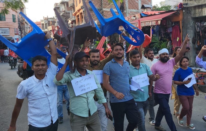 प्रदेश सरकार विरुद्ध विरोध,जनकपुरमा कुर्सी सहित निकाले विरोध जुलुस