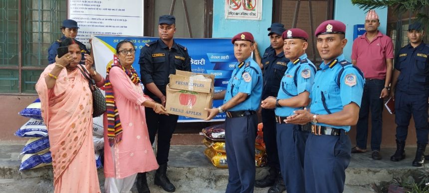 समुदाय–प्रहरी साझेदारी कार्यक्रम अन्तर्गत नेपाल प्रहरी श्रीमती संघको ४० औं बार्षिकित्सवको अवसरमा जिल्ला प्रहरी कार्यलय बाराले एक कार्यक्रमको आयोजना गरी सो सामाग्री वितरण गरेको हो । कलैया उप–महानगरपालिका वडा नम्बर ४ स्थित अमृता अनाथ आश्रममा बिहिवार एक कार्यक्रम बिच उसले राहत सामाग्री वितरण गरेको हो ।