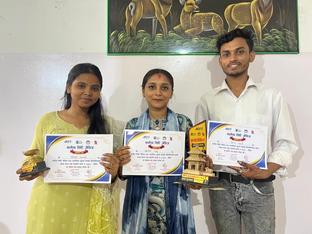 उक्त प्रतियोगितामा प्रथमलाई २ हजार,द्वितीय १ हजार ५ सय र तृतीय पुरस्कार १ हजार रुपैयाँ सहित प्रमाणपत्र तथा माया चिनो प्रमुख अतिथि यादवले प्रदान गर्नुभएको थियो ।
