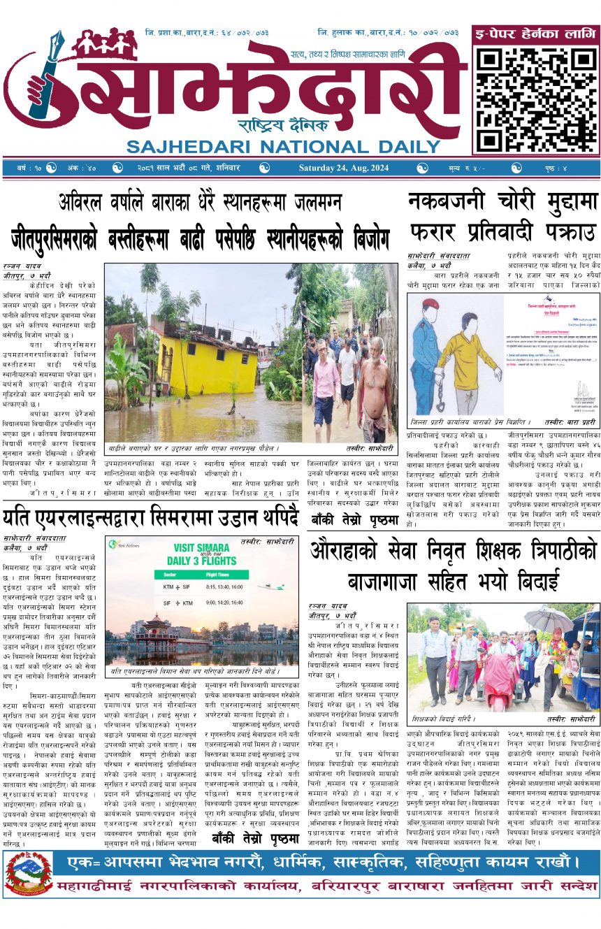 ई–पेपर २०८१ भदौ ०८ गते । साझेदारी दैनिक साझेदारी दैनिक २०८१ भाद्र ८, गते 269 पाठक संख्या शेयर शेयर Leave a review Leave a review Leave a Review Cancel replyYour email address will not be published. Required fields are marked * Please select a rating! Your Rating Rate… Perfect Good Average Not that Bad Very Poor Your Comment *नाम * Your Email * Your website Save my name, email, and website in this browser for the next time I comment. ताजा अपडेट २०८३ वैशाख ०५ गते । साझेदारी दैनिक ई–पेपर दुर्घटना न्यूनीकरणलाई केन्द्रमा राखेर काम गर्न डीआईजी थपलियाको निर्देशन मधेश मुख्य समाचार समाचार कलैयामा घरको ताला तोडेर करिब ५० लाख बराबरको चोरी मधेश मुख्य समाचार समाचार प्रधानमन्त्री कप क्रिकेटको उपाधि त्रिभुवन आर्मी क्लबलाई खेलकुद मधेश मुख्य समाचार समाचार लागुऔषधसहित विभिन्न स्थानबाट २४ जना पक्राउ प्रदेश समाचार समाचार सुनचाँदीको मूल्य घट्यो समाचार भन्सार छली प्रकरणः तीन जनाविरुद्ध अदालतमा मुद्दा, मुख्य अभियुक्तबाट २ करोडभन्दा बढी बिगो दाबी मधेश मुख्य समाचार समाचार मुख्य समाचार जीतपुरको गौशाला जग्गा अतिक्रमण घरटहरा हटाइयो मधेश मुख्य समाचार समाचार बारामा भूतपूर्व सैनिक पुनर्मिलन कार्यक्रम सम्पन्न मधेश समाचार पाँच पटक भन्दाबढी ट्राफिक नियम उल्लंघन गर्नेको लाइसेन्स निलम्बन प्रक्रिया सुरु मधेश मुख्य समाचार समाचार बाराका दुई नगरपालिकामा नयाँ प्रमुख प्रशासकीय अधिकृत खटाइए मधेश मुख्य समाचार समाचार पर्सामा नागरिकतासँगै राष्ट्रिय परिचयपत्र मधेश मुख्य समाचार समाचार प्रदेश समाचार राजश्व अनुसन्धान कार्यालय पथलैयामा आगलागी, प्रमुखको कार्यकक्ष ध्वस्त मधेश समाचार भाडा वृद्धि पछि सिमरा-काठमाडौं उडानमा यात्रु घटे मधेश मुख्य समाचार समाचार बारामा साढे दुई महिनामा एक करोडभन्दा बढीको अवैध सामान बरामद मधेश मुख्य समाचार समाचार सांसद साहलाई जीतपुरसिमरा-१७ का वडाबासीद्वारा ध्यानाकर्षणपत्र बुझाइयो मधेश मुख्य समाचार समाचार प्रधानमन्त्री कपको आजको खेलमा मधेस प्रदेश विजयी खेलकुद मधेश समाचार