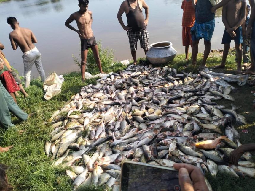 कलैया,१२ भदौ । बाराको कलैया उपमहानगरपालिकाको वडा नम्बर १० मा रहेका एक माछा पोखरीमा सवै माछाहरु मेरेका छन ।