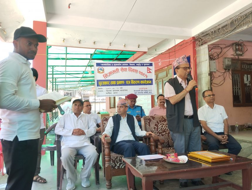 निजामती सेवा दिवस मुल समारोह समिति बाराका संयोजक एवम् प्रमुख जिल्ला अधिकारी शशिधर घिमिरेको अध्यक्षतामा भएको कार्यक्रमको उक्त कार्यक्रम भएको हो ।