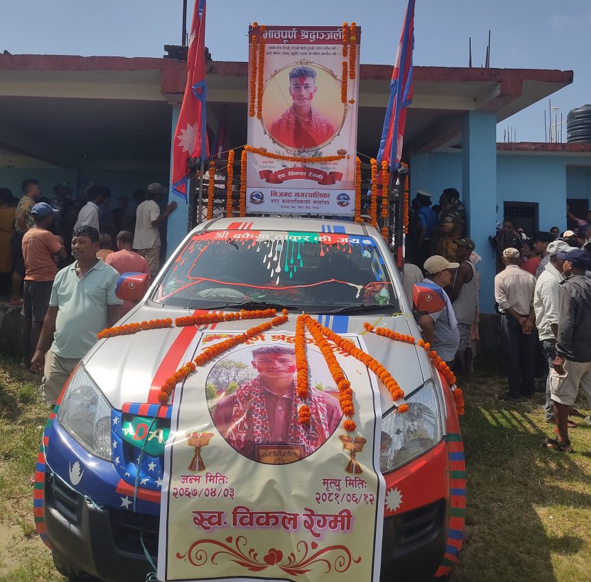 निजगढ : नवराज चौलागाईं/ पहिरोमा पुरिई निधन भएका निजगढका खेलाडी विकल रेग्मीको सोमबार अन्त्येष्टि गरिएको छ । विकलको सोमबार निजगढको लालबकैया नदी किनार स्थित आर्यघाटमा अन्त्येष्टि गरिएको हो ।