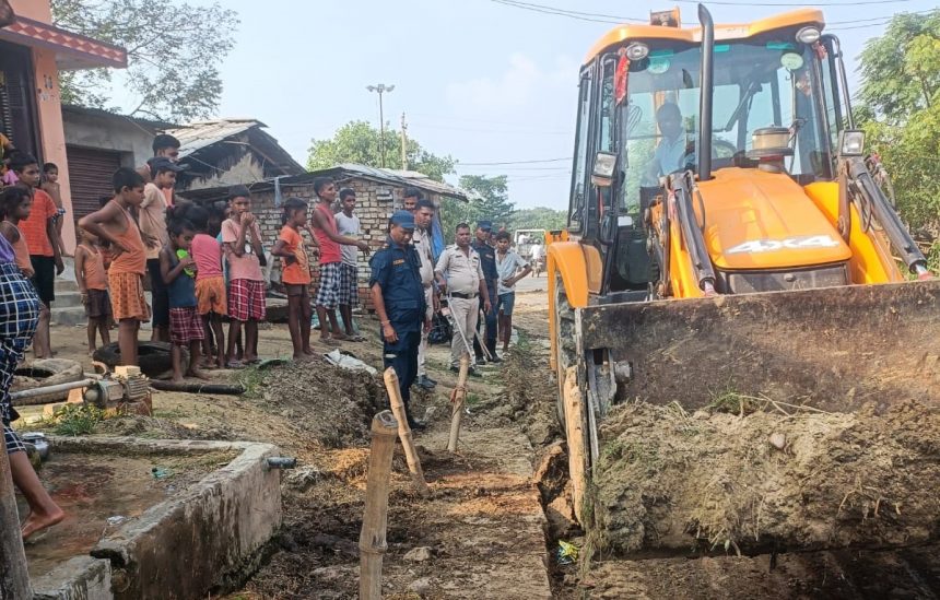 मूल सडकमा नागरिकहरुले राखेको सरसामान हटाइएको हो। नागरिकहरुले सडकमा राखेको नाँद तथा घरपालुवा जनावर राख्ने किला खुटाहरुलाई हटाइएको हो।