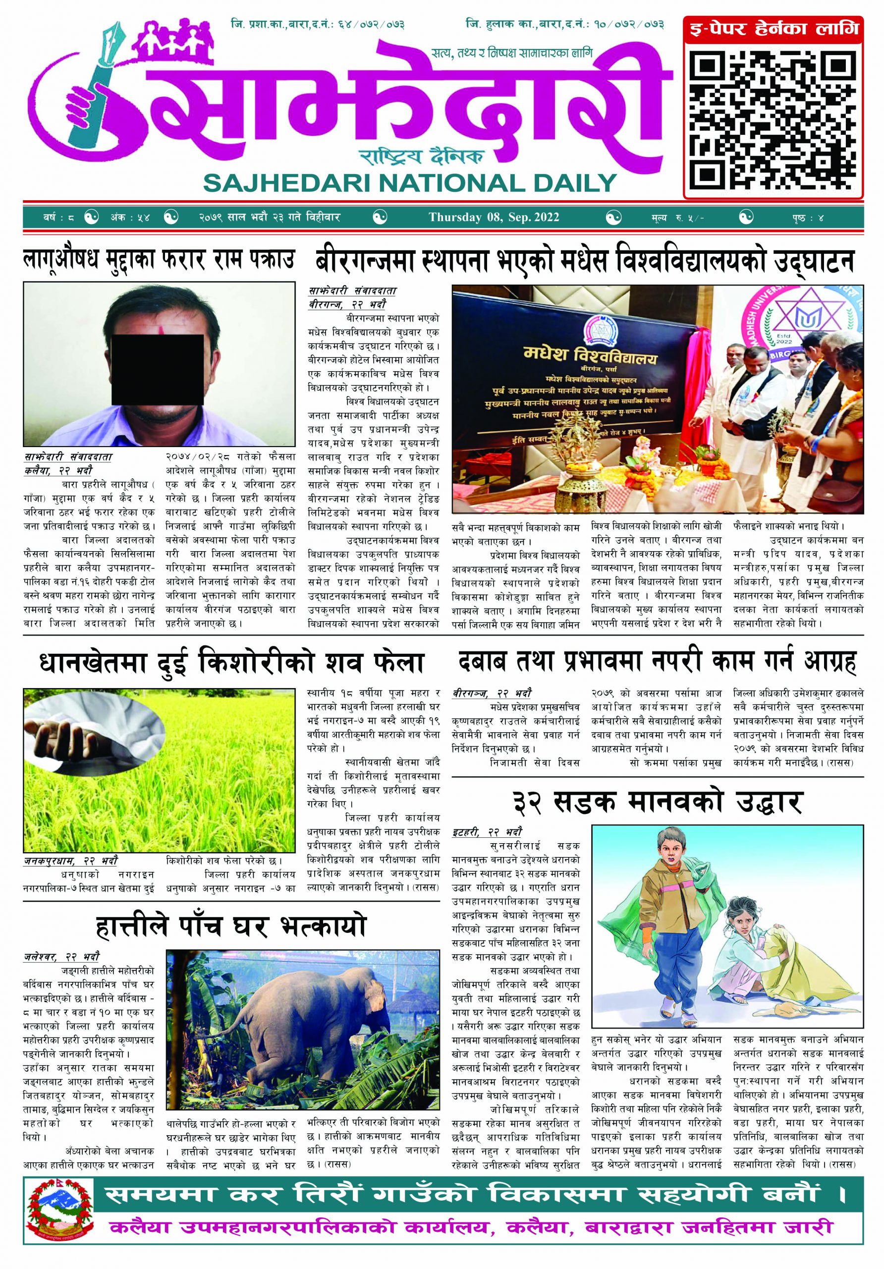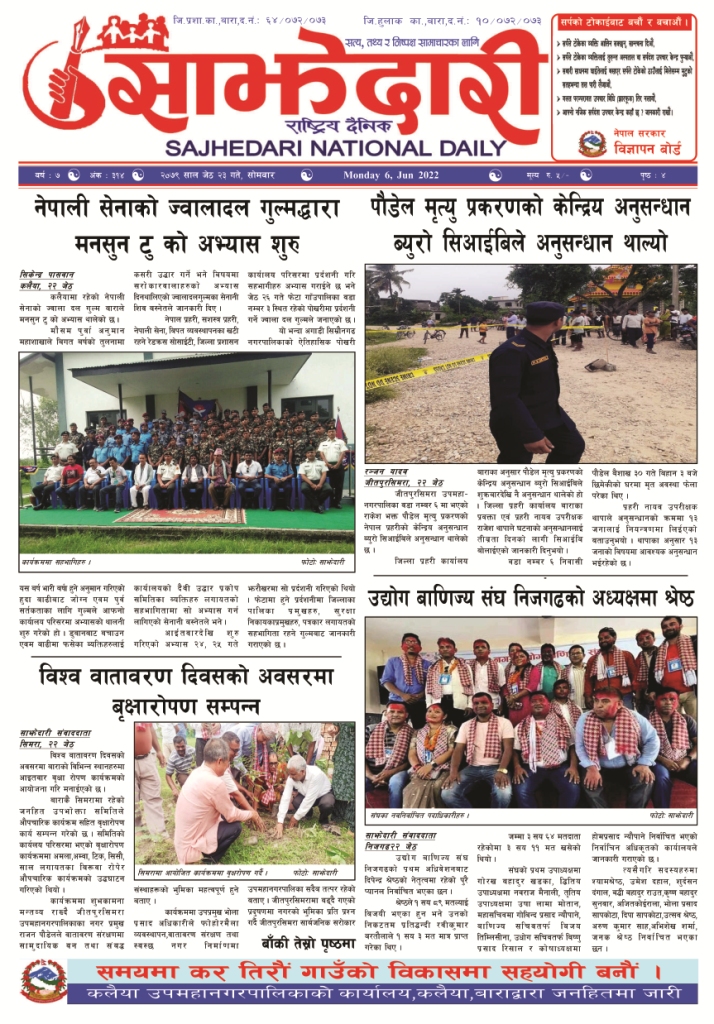 ई–पेपर २०८१ असोज २३ गते । साझेदारी दैनिक साझेदारी दैनिक २०८१ आश्विन २३, गते 407 पाठक संख्या शेयर शेयर Leave a review Leave a review Leave a Review Cancel replyYour email address will not be published. Required fields are marked * Please select a rating! Your Rating Rate… Perfect Good Average Not that Bad Very Poor Your Comment *नाम * Your Email * Your website Save my name, email, and website in this browser for the next time I comment. ताजा अपडेट लागुऔषधसहित विभिन्न स्थानबाट २४ जना पक्राउ प्रदेश समाचार समाचार सुनचाँदीको मूल्य घट्यो समाचार भन्सार छली प्रकरणः तीन जनाविरुद्ध अदालतमा मुद्दा, मुख्य अभियुक्तबाट २ करोडभन्दा बढी बिगो दाबी मधेश मुख्य समाचार समाचार जीतपुरको गौशाला जग्गा अतिक्रमण घरटहरा हटाइयो मधेश मुख्य समाचार समाचार बारामा भूतपूर्व सैनिक पुनर्मिलन कार्यक्रम सम्पन्न मधेश समाचार २०८३ वैशाख ०४ गते । साझेदारी दैनिक ई–पेपर पाँच पटक भन्दाबढी ट्राफिक नियम उल्लंघन गर्नेको लाइसेन्स निलम्बन प्रक्रिया सुरु मधेश मुख्य समाचार समाचार मुख्य समाचार बाराका दुई नगरपालिकामा नयाँ प्रमुख प्रशासकीय अधिकृत खटाइए मधेश मुख्य समाचार समाचार पर्सामा नागरिकतासँगै राष्ट्रिय परिचयपत्र मधेश मुख्य समाचार समाचार राजश्व अनुसन्धान कार्यालय पथलैयामा आगलागी, प्रमुखको कार्यकक्ष ध्वस्त मधेश समाचार भाडा वृद्धि पछि सिमरा-काठमाडौं उडानमा यात्रु घटे मधेश मुख्य समाचार समाचार बारामा साढे दुई महिनामा एक करोडभन्दा बढीको अवैध सामान बरामद मधेश मुख्य समाचार समाचार प्रदेश समाचार सांसद साहलाई जीतपुरसिमरा-१७ का वडाबासीद्वारा ध्यानाकर्षणपत्र बुझाइयो मधेश मुख्य समाचार समाचार प्रधानमन्त्री कपको आजको खेलमा मधेस प्रदेश विजयी खेलकुद मधेश समाचार स्थानीय तहसँग मागियो विद्यालय समायोजनको विवरण प्रदेश समाचार समाचार होटेल करण राज प्यालेसमा आधुनिक सुविधासहित स्विमिङ पुल उद्घाटन मधेश मुख्य समाचार समाचार रिलायन्स सुगर एण्ड केमिकल इन्डस्ट्रिजद्वारा उखु क्रसिङ सिजन समापन मधेश मुख्य समाचार समाचार