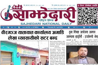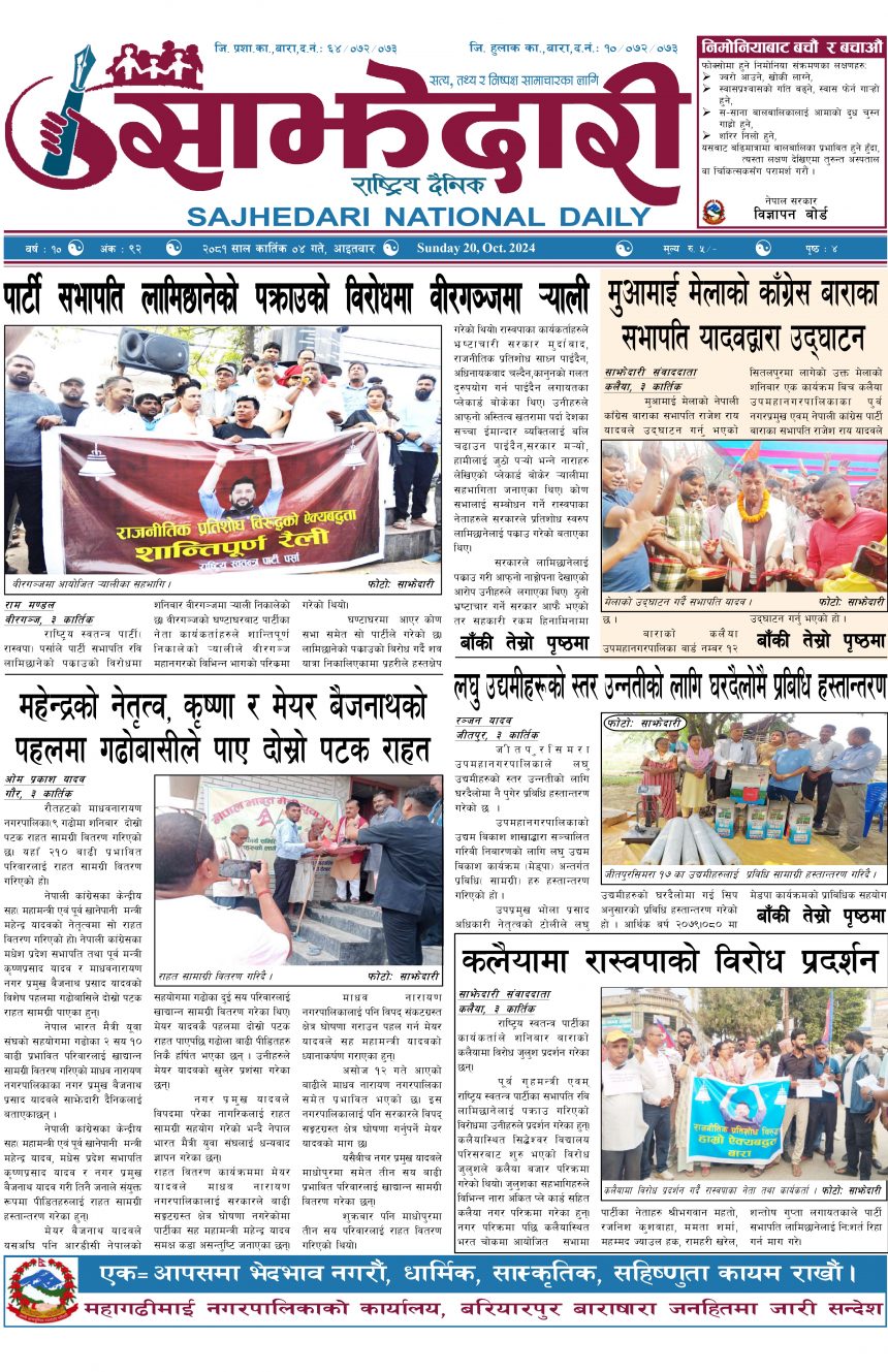 ई–पेपर २०८१ कार्तिक ०४ गते । साझेदारी दैनिक साझेदारी दैनिक २०८१ कार्तिक ४, गते 251 पाठक संख्या शेयर शेयर Leave a review Leave a review Leave a Review Cancel replyYour email address will not be published. Required fields are marked * Please select a rating! Your Rating Rate… Perfect Good Average Not that Bad Very Poor Your Comment *नाम * Your Email * Your website Save my name, email, and website in this browser for the next time I comment. ताजा अपडेट प्रधानमन्त्री कप क्रिकेटको उपाधि त्रिभुवन आर्मी क्लबलाई खेलकुद मधेश मुख्य समाचार समाचार लागुऔषधसहित विभिन्न स्थानबाट २४ जना पक्राउ प्रदेश समाचार समाचार सुनचाँदीको मूल्य घट्यो समाचार भन्सार छली प्रकरणः तीन जनाविरुद्ध अदालतमा मुद्दा, मुख्य अभियुक्तबाट २ करोडभन्दा बढी बिगो दाबी मधेश मुख्य समाचार समाचार जीतपुरको गौशाला जग्गा अतिक्रमण घरटहरा हटाइयो मधेश मुख्य समाचार समाचार बारामा भूतपूर्व सैनिक पुनर्मिलन कार्यक्रम सम्पन्न मधेश समाचार २०८३ वैशाख ०४ गते । साझेदारी दैनिक ई–पेपर मुख्य समाचार पाँच पटक भन्दाबढी ट्राफिक नियम उल्लंघन गर्नेको लाइसेन्स निलम्बन प्रक्रिया सुरु मधेश मुख्य समाचार समाचार बाराका दुई नगरपालिकामा नयाँ प्रमुख प्रशासकीय अधिकृत खटाइए मधेश मुख्य समाचार समाचार पर्सामा नागरिकतासँगै राष्ट्रिय परिचयपत्र मधेश मुख्य समाचार समाचार राजश्व अनुसन्धान कार्यालय पथलैयामा आगलागी, प्रमुखको कार्यकक्ष ध्वस्त मधेश समाचार भाडा वृद्धि पछि सिमरा-काठमाडौं उडानमा यात्रु घटे मधेश मुख्य समाचार समाचार प्रदेश समाचार बारामा साढे दुई महिनामा एक करोडभन्दा बढीको अवैध सामान बरामद मधेश मुख्य समाचार समाचार सांसद साहलाई जीतपुरसिमरा-१७ का वडाबासीद्वारा ध्यानाकर्षणपत्र बुझाइयो मधेश मुख्य समाचार समाचार प्रधानमन्त्री कपको आजको खेलमा मधेस प्रदेश विजयी खेलकुद मधेश समाचार स्थानीय तहसँग मागियो विद्यालय समायोजनको विवरण प्रदेश समाचार समाचार होटेल करण राज प्यालेसमा आधुनिक सुविधासहित स्विमिङ पुल उद्घाटन मधेश मुख्य समाचार समाचार