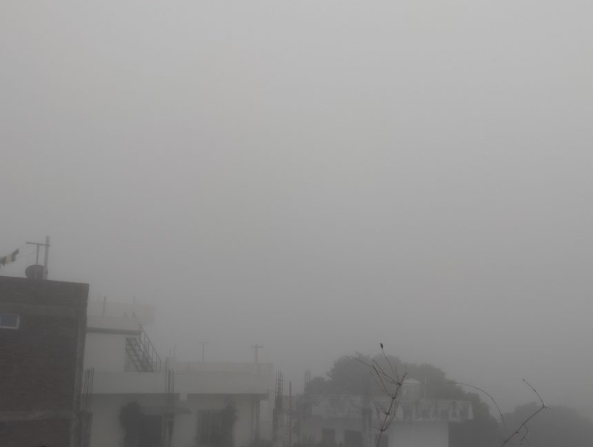 बिहानै लागेको हुस्सु दिउँसो सम्म पनि नहटदा कतिपय सवारी साधनहरले बती बालेर नै सवारी चलाएका हुन्।