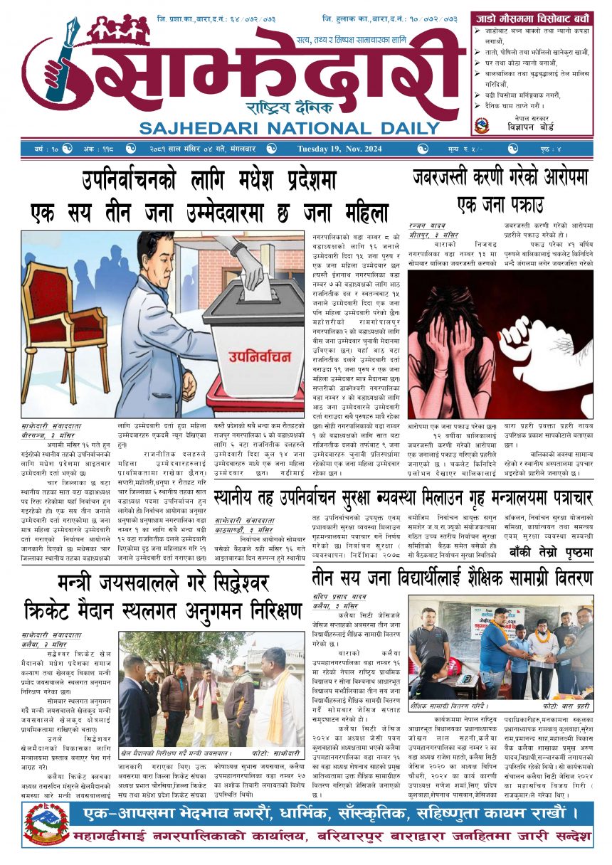 ई–पेपर २०८१ मंसिर ०४ गते । साझेदारी दैनिक साझेदारी दैनिक २०८१ मंसिर ४, गते 237 पाठक संख्या शेयर शेयर Leave a review Leave a review Leave a Review Cancel replyYour email address will not be published. Required fields are marked * Please select a rating! Your Rating Rate… Perfect Good Average Not that Bad Very Poor Your Comment *नाम * Your Email * Your website Save my name, email, and website in this browser for the next time I comment. ताजा अपडेट २०८३ वैशाख ०५ गते । साझेदारी दैनिक ई–पेपर दुर्घटना न्यूनीकरणलाई केन्द्रमा राखेर काम गर्न डीआईजी थपलियाको निर्देशन मधेश मुख्य समाचार समाचार कलैयामा घरको ताला तोडेर करिब ५० लाख बराबरको चोरी मधेश मुख्य समाचार समाचार प्रधानमन्त्री कप क्रिकेटको उपाधि त्रिभुवन आर्मी क्लबलाई खेलकुद मधेश मुख्य समाचार समाचार लागुऔषधसहित विभिन्न स्थानबाट २४ जना पक्राउ प्रदेश समाचार समाचार सुनचाँदीको मूल्य घट्यो समाचार भन्सार छली प्रकरणः तीन जनाविरुद्ध अदालतमा मुद्दा, मुख्य अभियुक्तबाट २ करोडभन्दा बढी बिगो दाबी मधेश मुख्य समाचार समाचार मुख्य समाचार जीतपुरको गौशाला जग्गा अतिक्रमण घरटहरा हटाइयो मधेश मुख्य समाचार समाचार बारामा भूतपूर्व सैनिक पुनर्मिलन कार्यक्रम सम्पन्न मधेश समाचार पाँच पटक भन्दाबढी ट्राफिक नियम उल्लंघन गर्नेको लाइसेन्स निलम्बन प्रक्रिया सुरु मधेश मुख्य समाचार समाचार बाराका दुई नगरपालिकामा नयाँ प्रमुख प्रशासकीय अधिकृत खटाइए मधेश मुख्य समाचार समाचार पर्सामा नागरिकतासँगै राष्ट्रिय परिचयपत्र मधेश मुख्य समाचार समाचार प्रदेश समाचार राजश्व अनुसन्धान कार्यालय पथलैयामा आगलागी, प्रमुखको कार्यकक्ष ध्वस्त मधेश समाचार भाडा वृद्धि पछि सिमरा-काठमाडौं उडानमा यात्रु घटे मधेश मुख्य समाचार समाचार बारामा साढे दुई महिनामा एक करोडभन्दा बढीको अवैध सामान बरामद मधेश मुख्य समाचार समाचार सांसद साहलाई जीतपुरसिमरा-१७ का वडाबासीद्वारा ध्यानाकर्षणपत्र बुझाइयो मधेश मुख्य समाचार समाचार प्रधानमन्त्री कपको आजको खेलमा मधेस प्रदेश विजयी खेलकुद मधेश समाचार