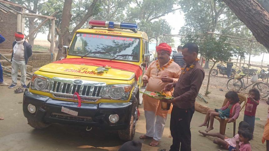 नगर प्रमुख यादवले आईतवार बिहान माधव नारायण नगरपालिका –६ माधोपुर गढीमाई मन्दिरको प्राङ्गणमा एम्बुलेन्सको पूजा गर्दै उद्घाटन समेत गरेका थिए।