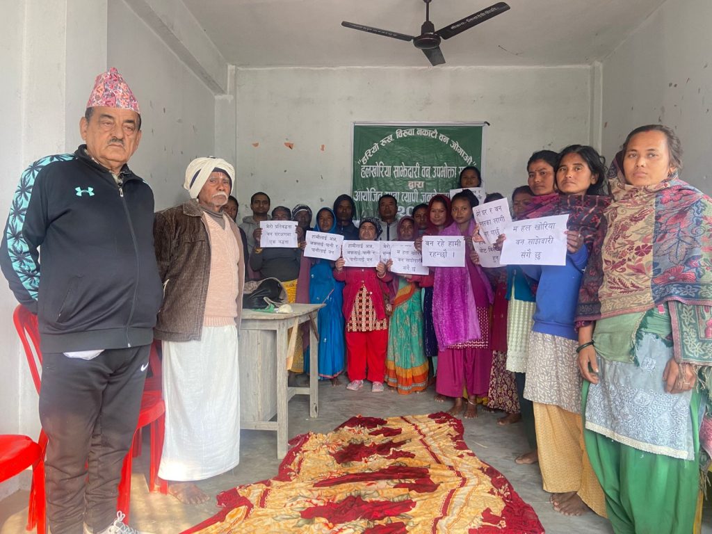 वन रहे हामी रहन्छौ,मेरो घर र वन सन्तानको लागि संरक्षण गर्छु, म हलखोरिया साझेदारी वनसंगै छु भन्ने नारा अंकित प्लेकार्ड समेत सहभागिले बोकेका हुन्।