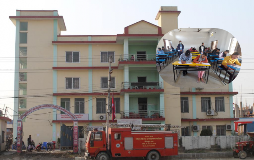 उपमहानगरपालिका वडा नं.२ सिमरा स्थित श्री ने.रा.नमुना मा.बि. सिमरामा भएको लिखित परीक्षामा यसरी उनीहरुले परीक्षा दिएका हुन्। उपमहानगरपालिकाले १५ जना करारका कार्यालय सहयोगीकोलागि आवदेन मागको थियो।