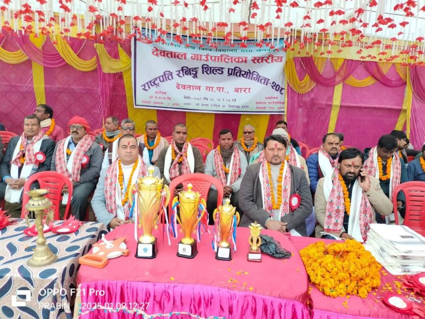 बाराको देवताल गाउँपालिकास्थित धुराहा श्री नेपाल राष्ट्रिय आधारभुत बिधालयको प्राङ्गणमा विहिवारदेखि राष्ट्रपति रनिंङ्ग शिल्ड प्रतियोगिता सुरु भएको हो ।