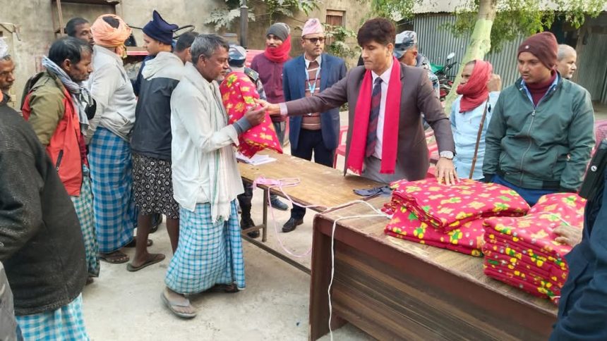 यस्तै पोखरिया नगरपालिका–७ रानिगञ्जका लक्षित समूहहरुलाई एक सय ३५ थान कम्बल वितरण गरिएको हो। वडा नम्बर–४ का बासिन्दालाई ६४ थान कम्बल बितरण गरिएको थियो।