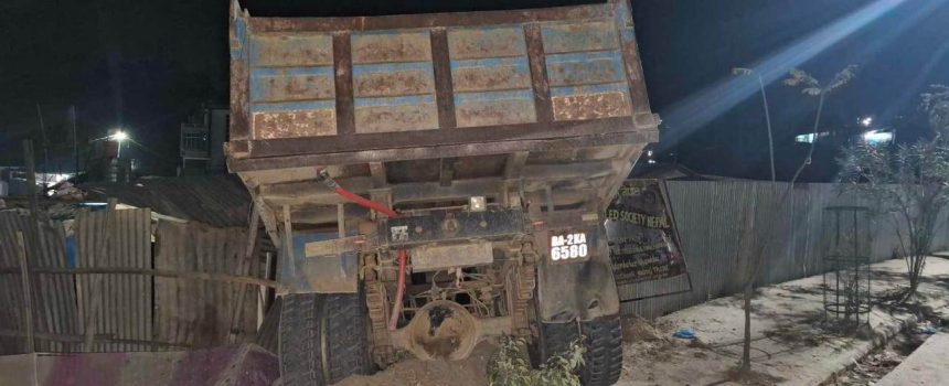 बिहान करिब ३ः४० सो बजेको समयमा काठमाडौँको शङ्खरापुर नगरपालिका–६ साँखु सलम्बुटारस्थित साँखु–ब्रह्मखेल सडकखण्डमा बा२क ६५८० नम्बरको टिपर अनियन्त्रित भई युवराज थापाले सञ्चालन गरेको द्वन्द्वपीडित तथा अपाङ्ग समाज संस्थाले बनाएको जस्ताको टहरामा ठक्कर दिन पुगेको थियो ।