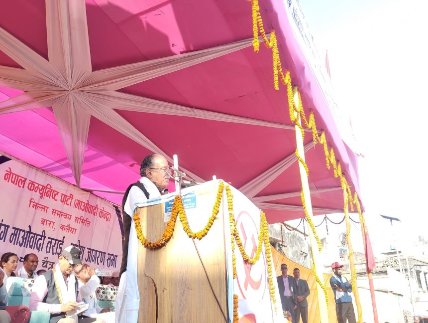 नेकपा माओवादी केन्द्र बाराले कलैयामा बिहीबार आयोजना गरेको जनतासंग माओबादी तराई मधेश जागरण सभालाई प्रमुख आतिथ्यबाट सम्बोधन गर्दै उनले यस्तो आरोप लगाएका हुन्।