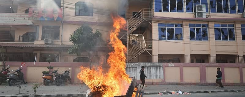 राजावादीले जलाए नेकपा एसको कार्यालय