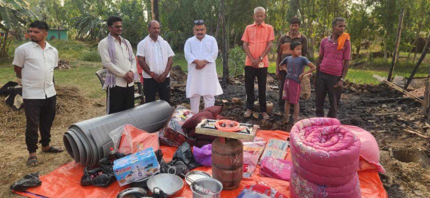 आगलागीले घर र घरका सबै सामान जलेर नष्ट हुँदा यादव परिवार विचलीमा परेको देखेपछि माधव नारायण नगर प्रमुख बैजनाथ प्रसाद यादवले आज उनको घरमै पुगेर भाडा वर्तन,खाद्यान्न सामग्री र लत्ताकपडा वितरण गरेका छन्।