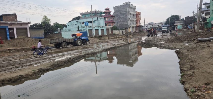 पानीले संस्कार एफ. एम. देखि भरत चोक सम्मको डेढ किलो मिटर बाटो हिलाम्मे बनेपछि सवारी साधनलाई आवत जावत गर्न समस्या भएको हो।